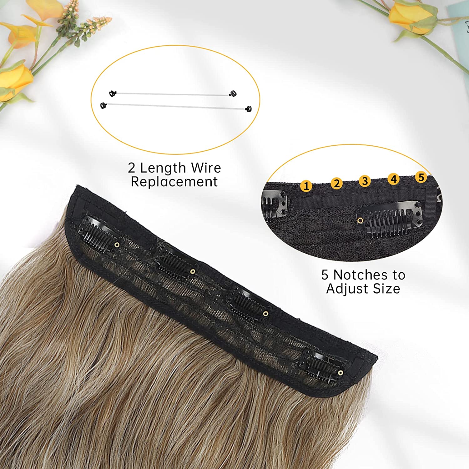 • Secure Fit: 1. 4 clips sewn on the weft will keep the hair extensions stay in place. 2. Thicker and invisible wire allows the extension to lie smooth and flat on the head like a secret headband. 3. New S Hook will prevent the wire from falling off.