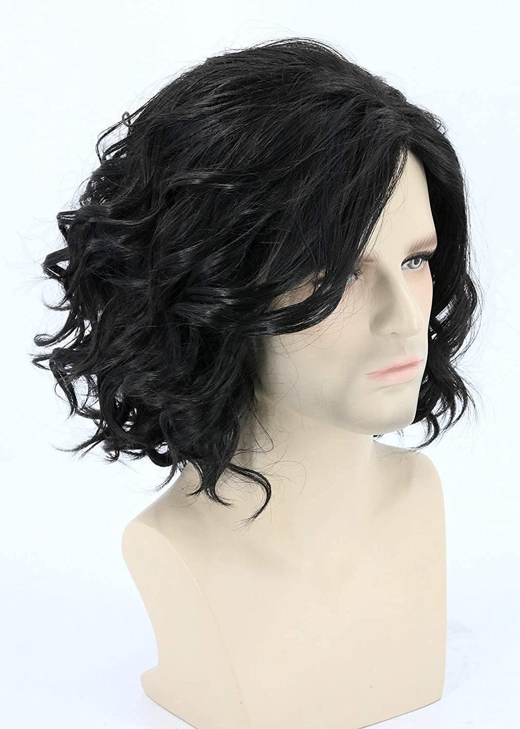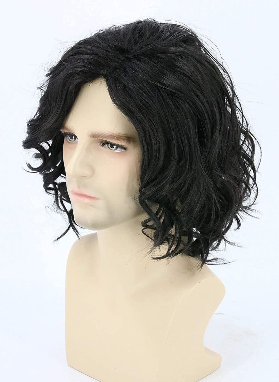 Jon Snow Wig Mens Wigs Short Black Curly Style Cosplay Halloween Costume Wig