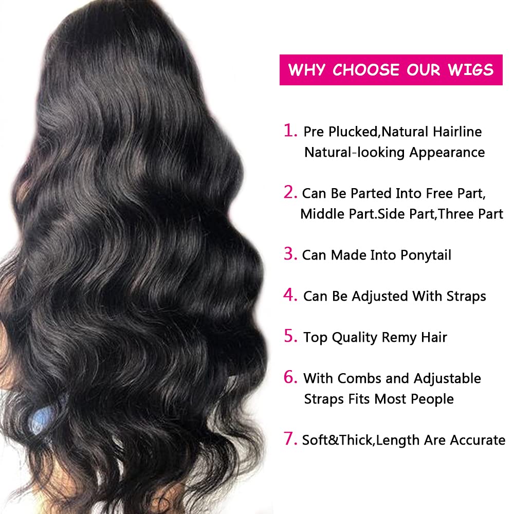 - LACE FRONT WIGS QUALITY : 10A Grade Brazilian Virgin Body Wave Human Hair Wigs , 150% Density Human Hair Lace Closure Wig, Soft and Silky, NO Shedding & Tangle Free, Full and Thick,Can be Bleached, Wave Curled and Styled as Your Like