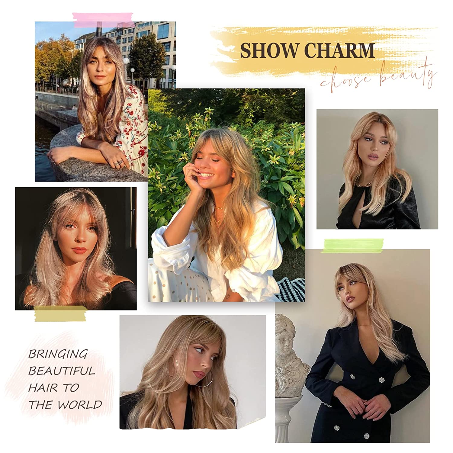 Long Blonde Wigs For Women Body Wave Wig With Fringe Curly Synthetic Wig Heat Resistant Natural Looking