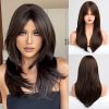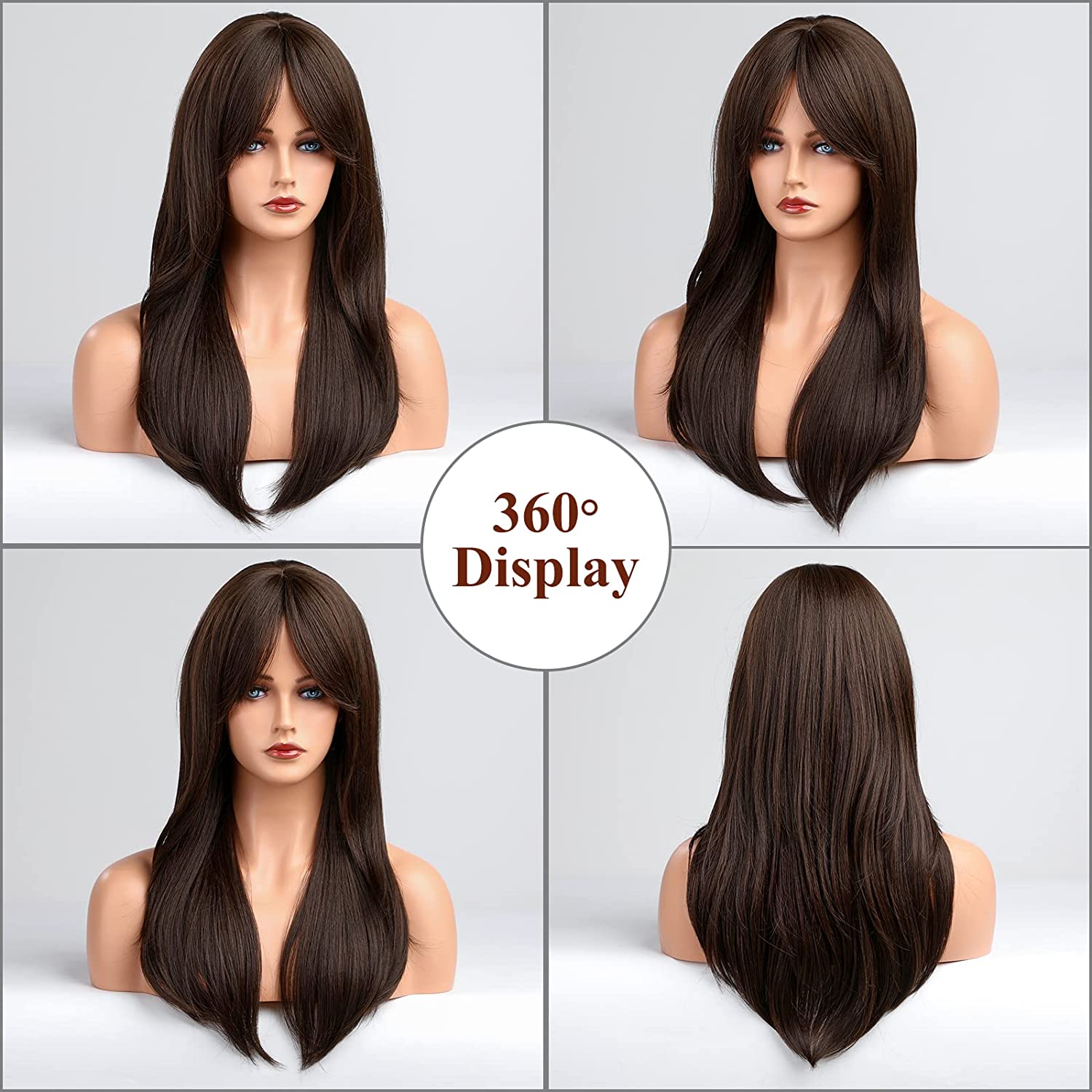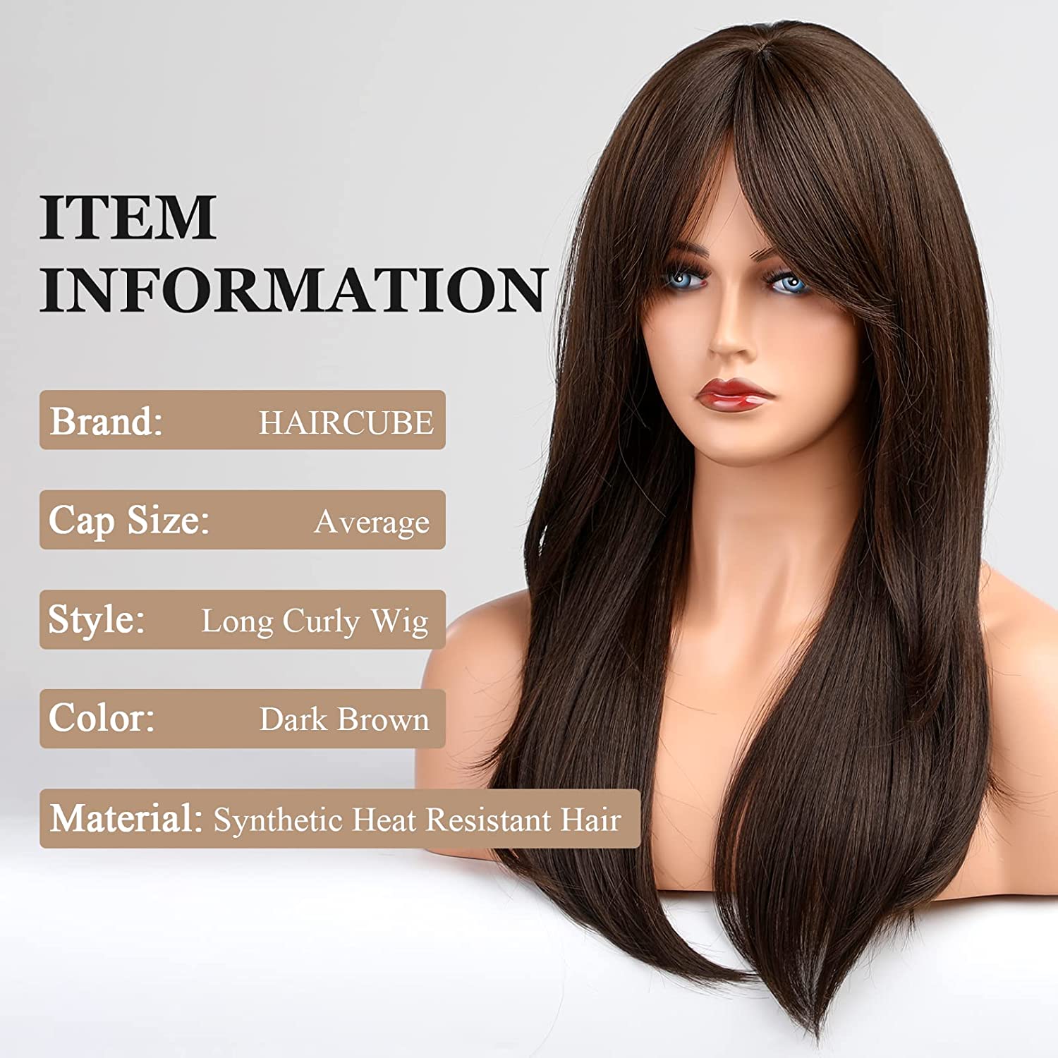 Long Curly Dark Brown Women’s Wigs Synthetic Wigs For Women With Fringe Natural Wave Hair Wigs For Women Cosplay Women’s Wig