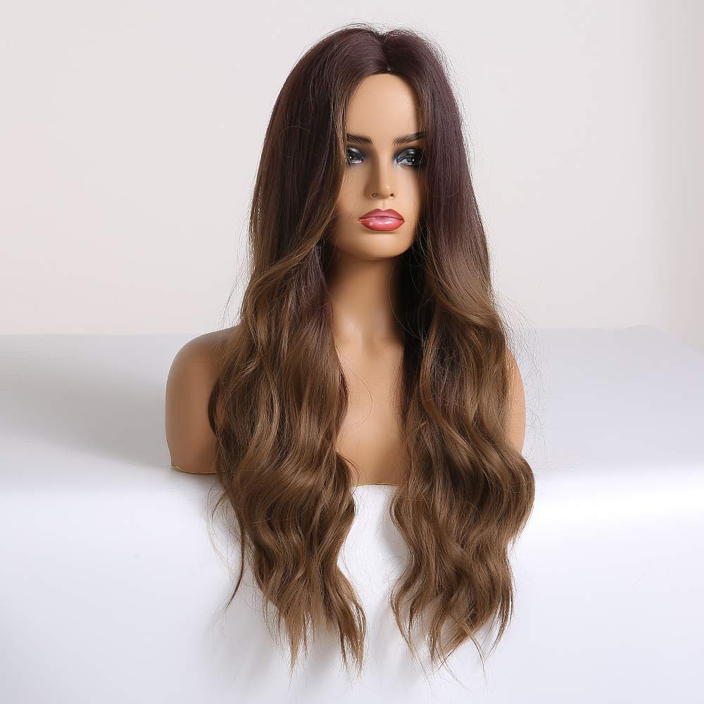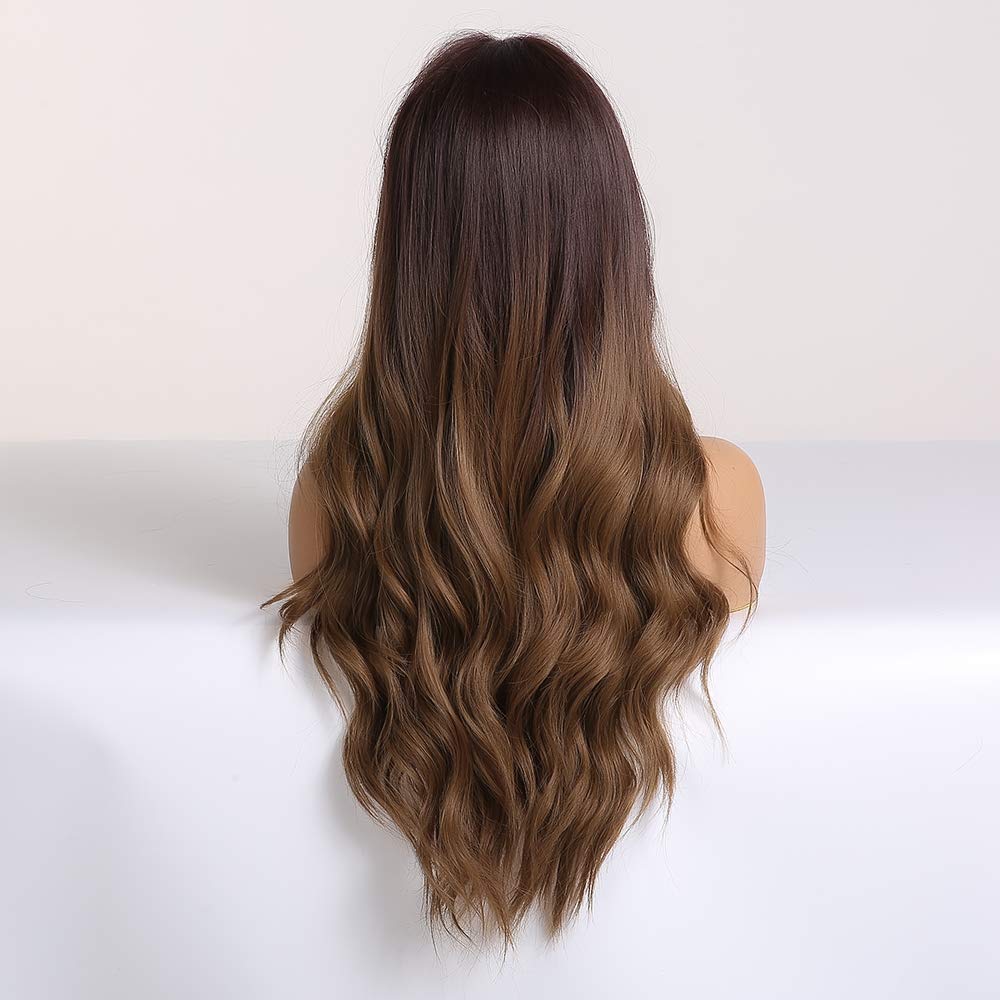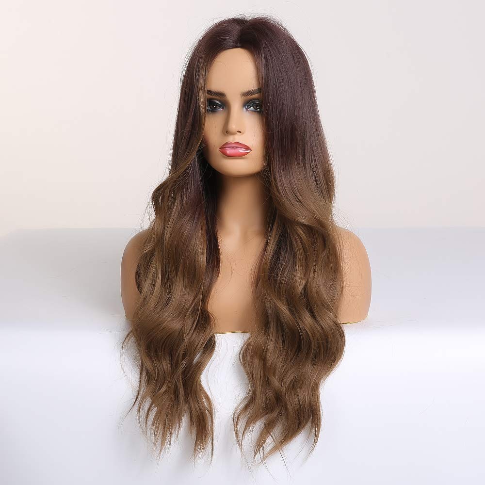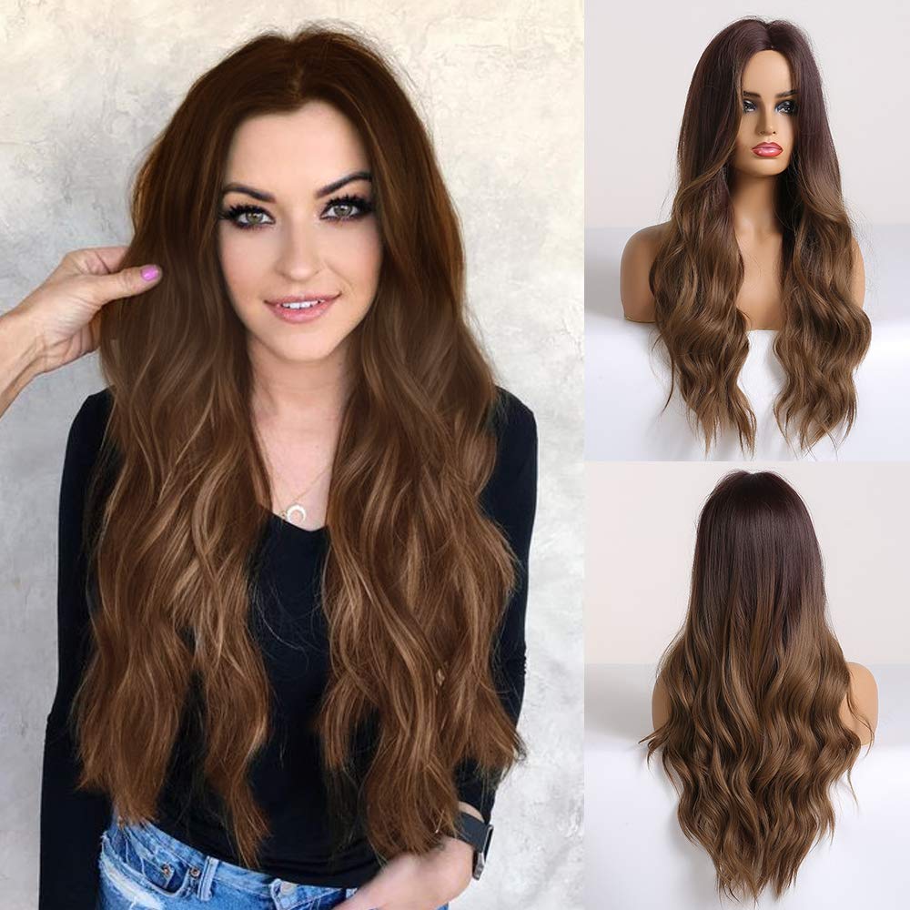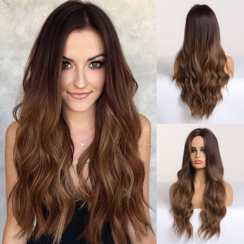 Long Ombre Brown Wig For Women Long Wavy Brown Wig Middle Part Synthetic Heat Resistant Wigs Daily Party Use Brown Wig 22 Inches