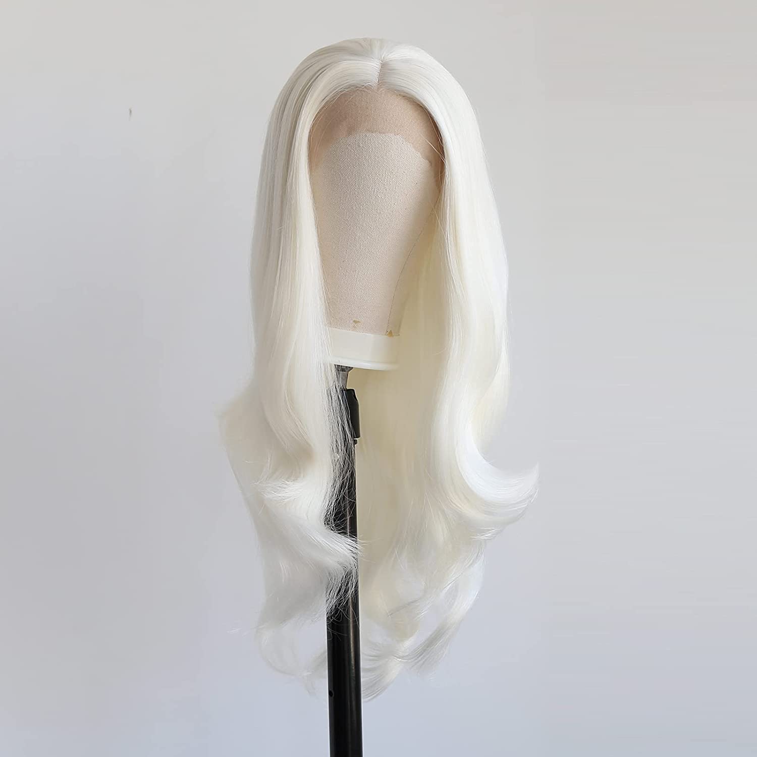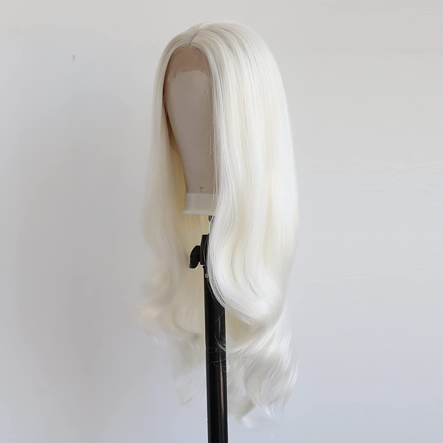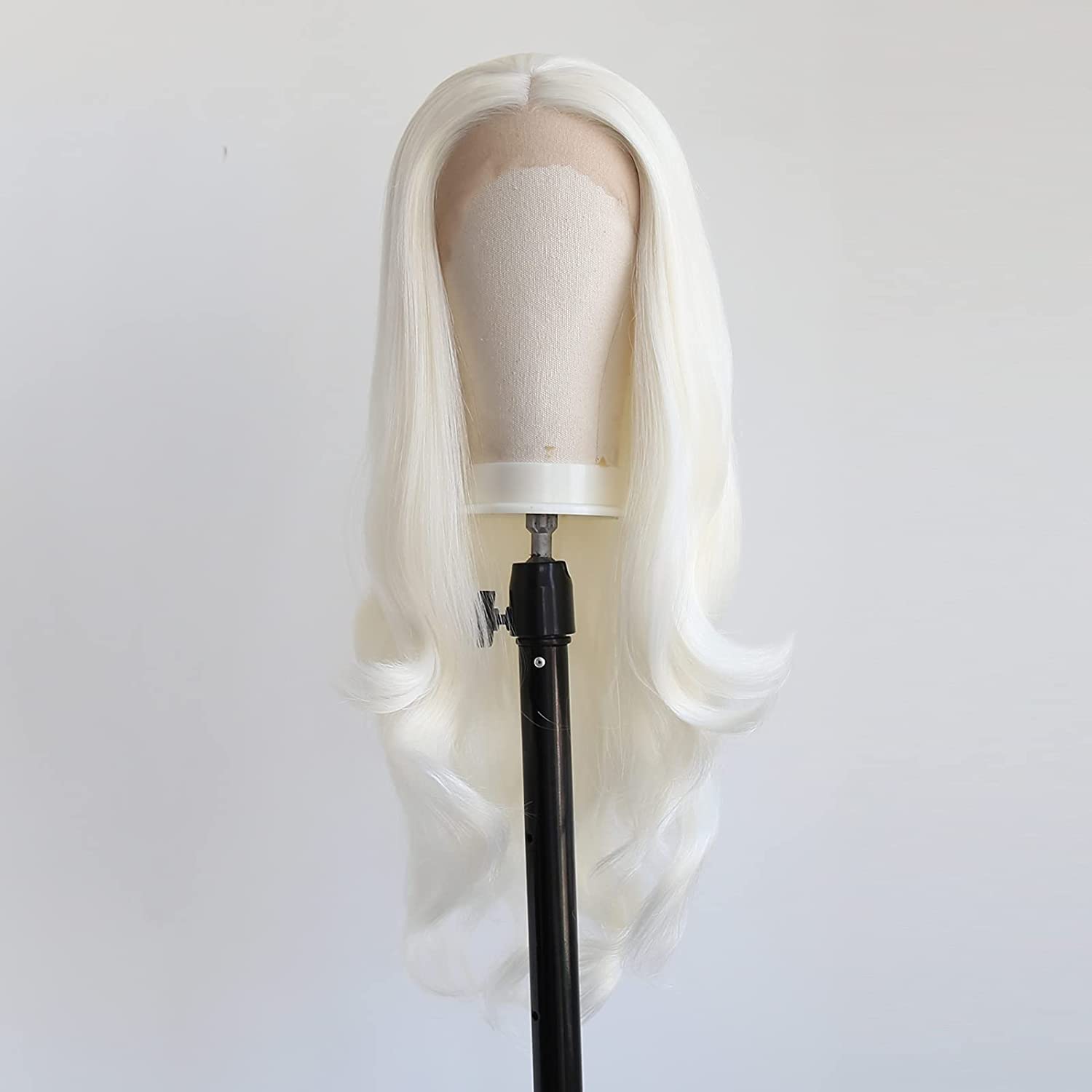 Long Wavy Platinum Blonde Synthetic Lace Front Wigs For Women #60 Color Middle Part Glueless High Temperature Fiber 13x3inch Hand Tied Natural Hairline Cosplay Daily Wear Wig (24inch, #60-wavy)