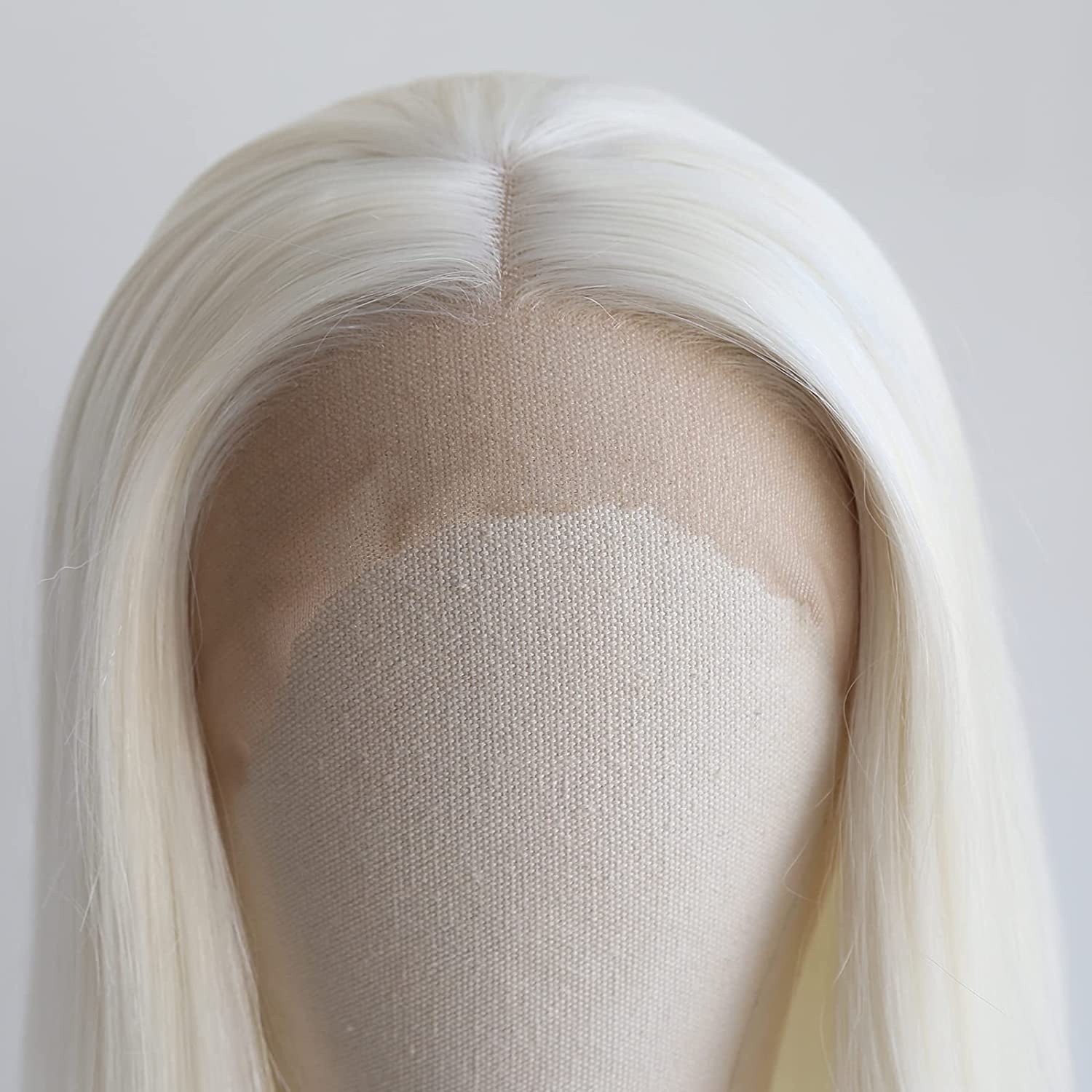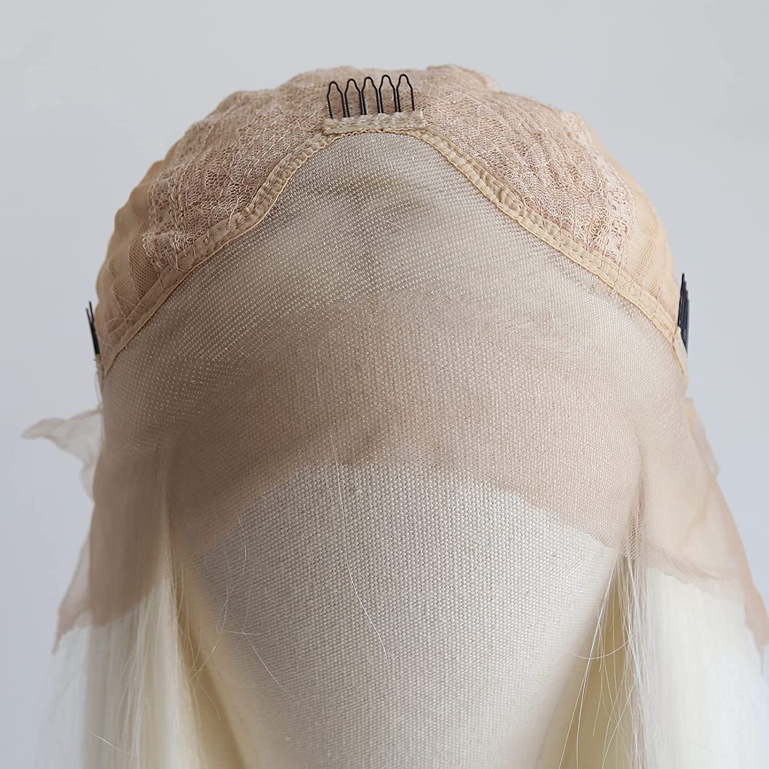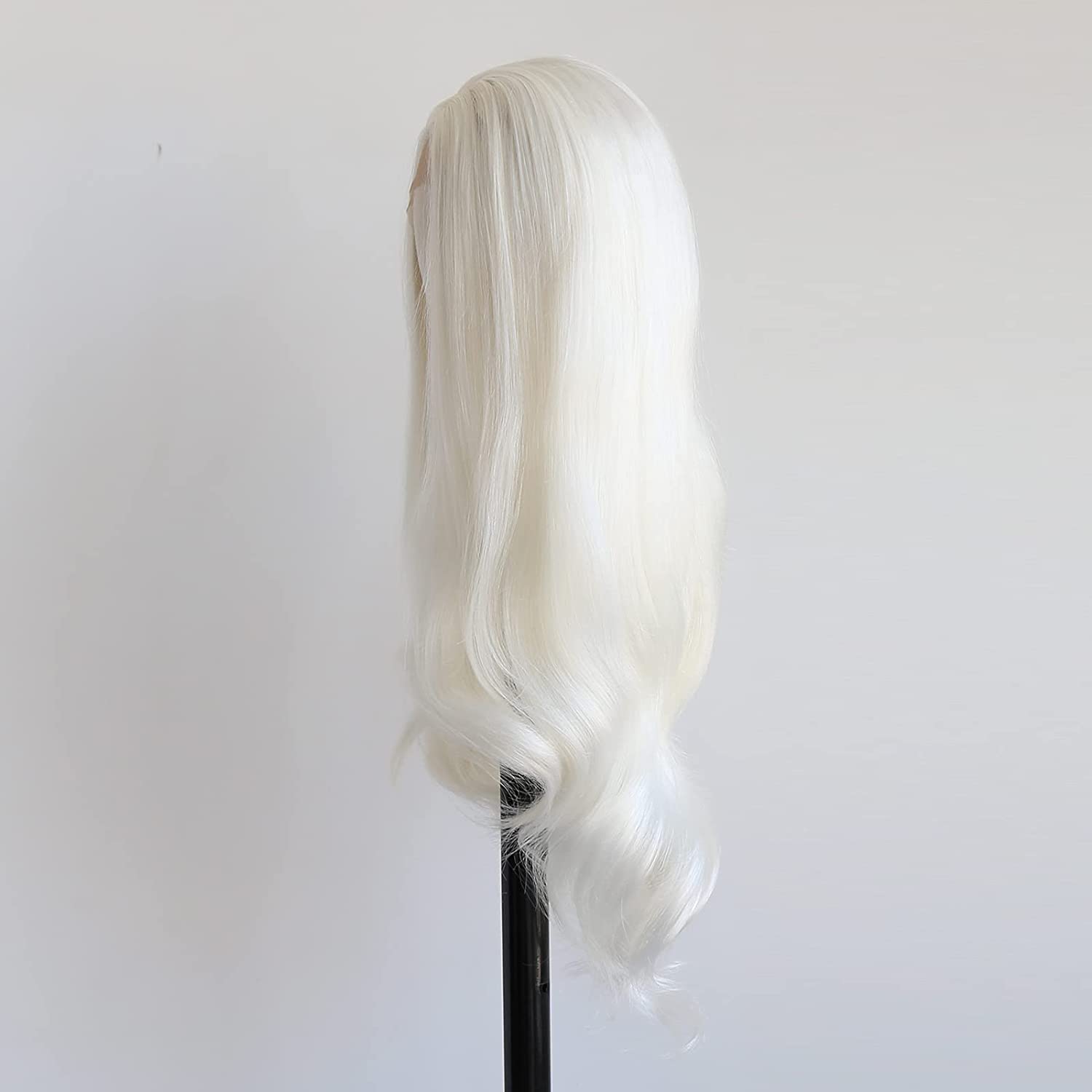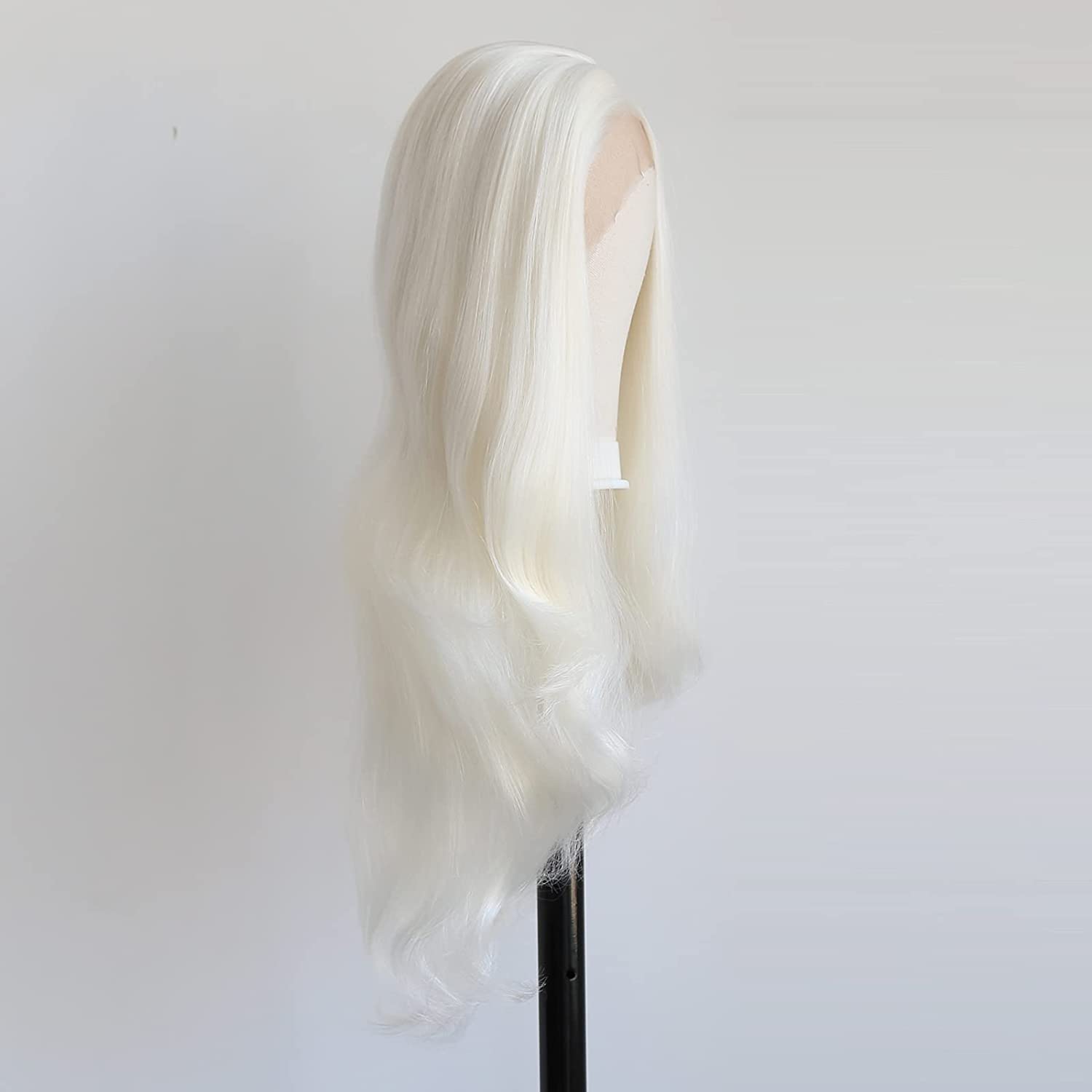 Long Wavy Platinum Blonde Synthetic Lace Front Wigs For Women #60 Color Middle Part Glueless High Temperature Fiber 13x3inch Hand Tied Natural Hairline Cosplay Daily Wear Wig (24inch, #60-wavy)