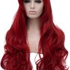 Long Women Wavy Red Synthetic Cosplay Wig For Women Halloween And Party Fancy Dress With 1 Wig Cap