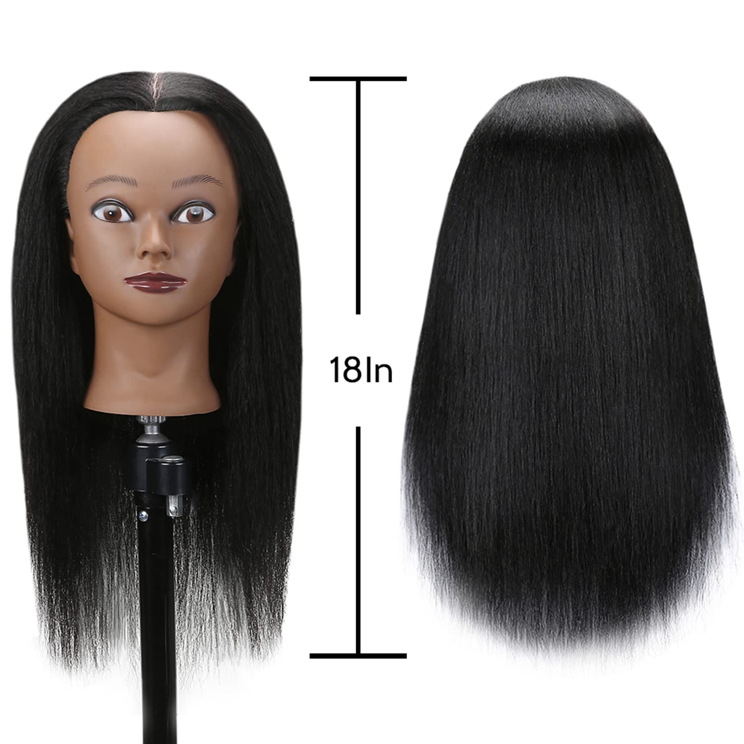 Mannequin Head With 100% Real Hair, 18″ Hairdresser Cosmetology Mannequin Manikin Training Practice Doll Head With Free Clamp And 9 Tools For Hairstyling – Black