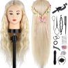 Mannequin Head With 80% Real Hair, 24″ Blonde Human Hair Styling Hairdressing Cosmetology Mannequin Manikin Training Practice Head With Clamp And Tools