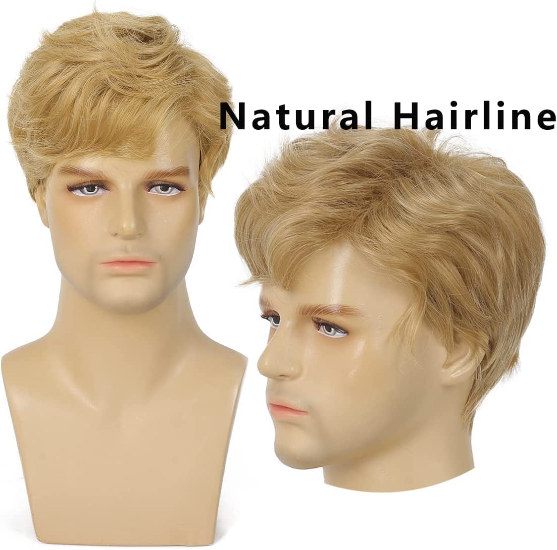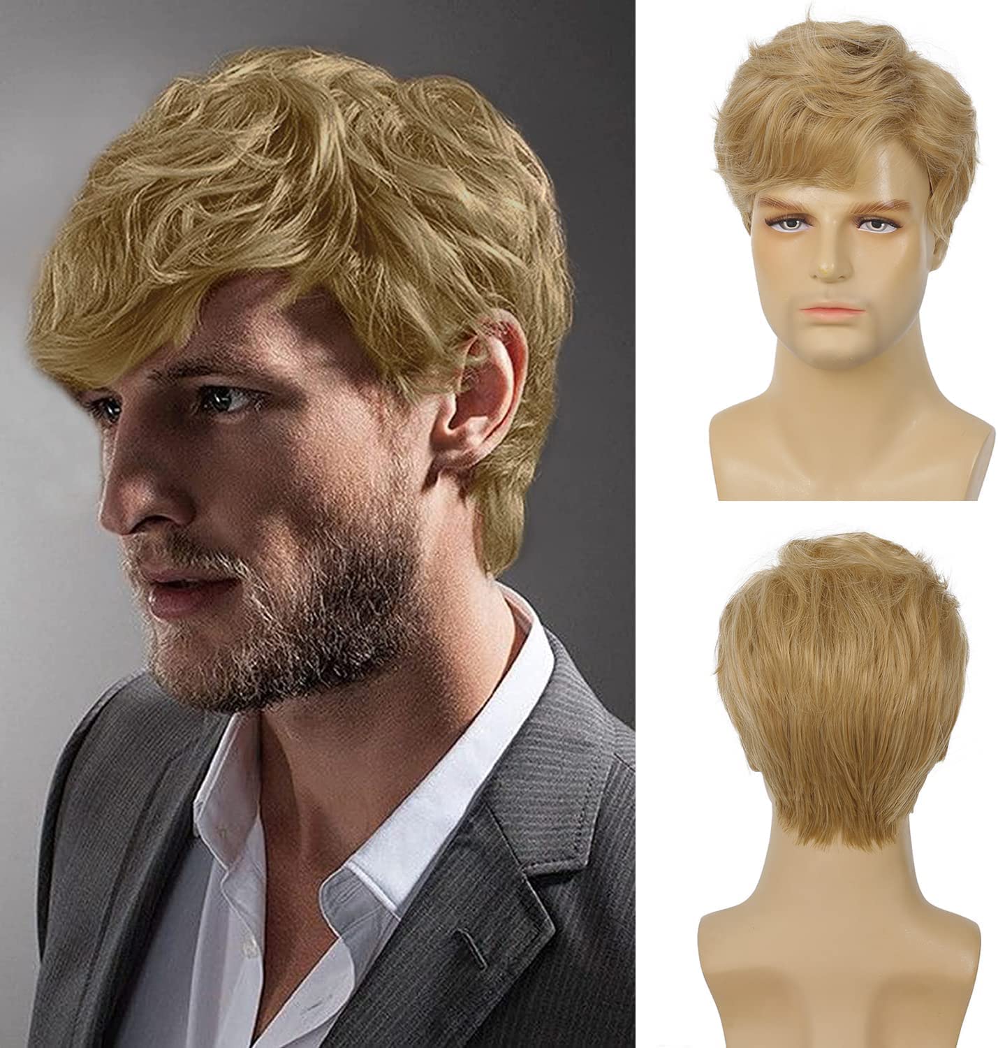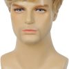 Mens Blonde Wig Curly Cosplay Wig Synthetic Halloween Hair Wig With Wig Cap