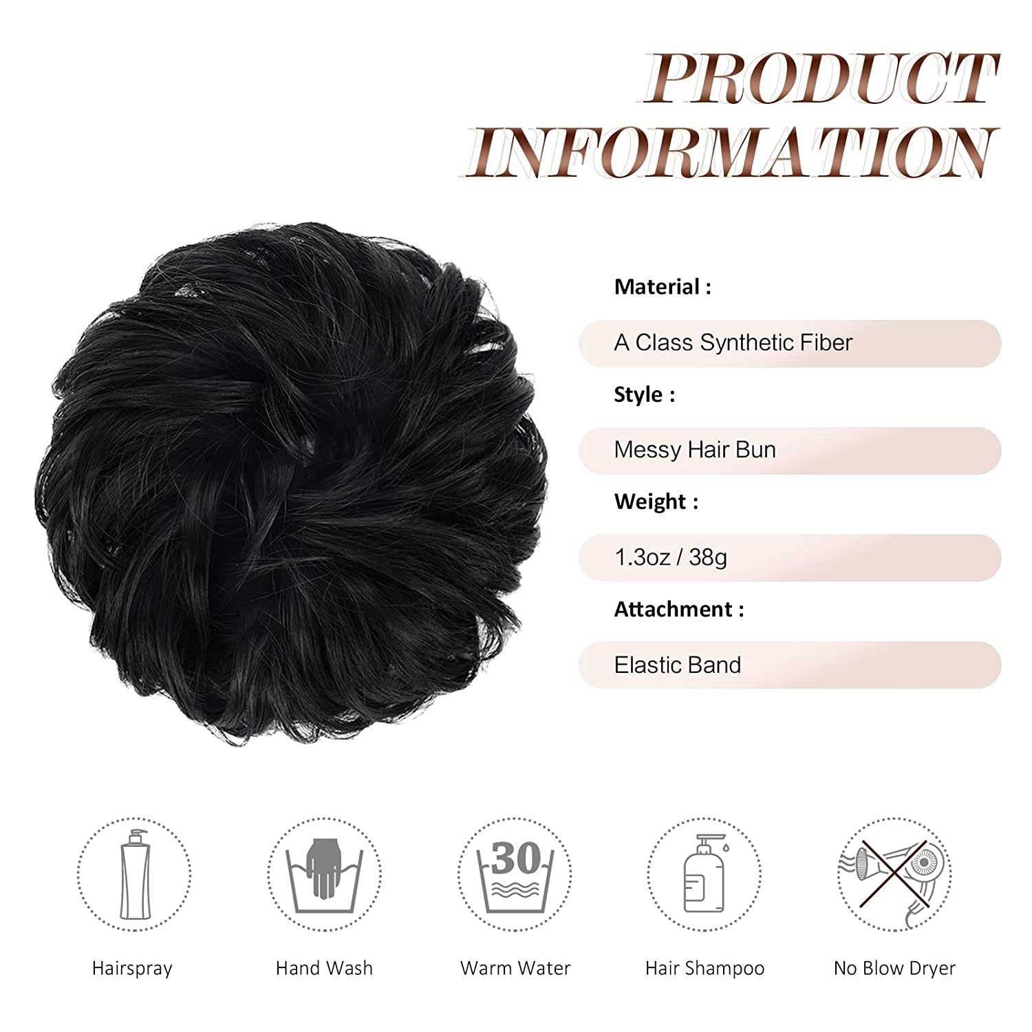 - 【ELASTIC HAIR TIE】The elastic hair tie on the hairpiece can be adjusted for thin or thick hair. If the hair piece bun is too loose, you can secure with hair pins, which will make the hair bun tight on your own hair.