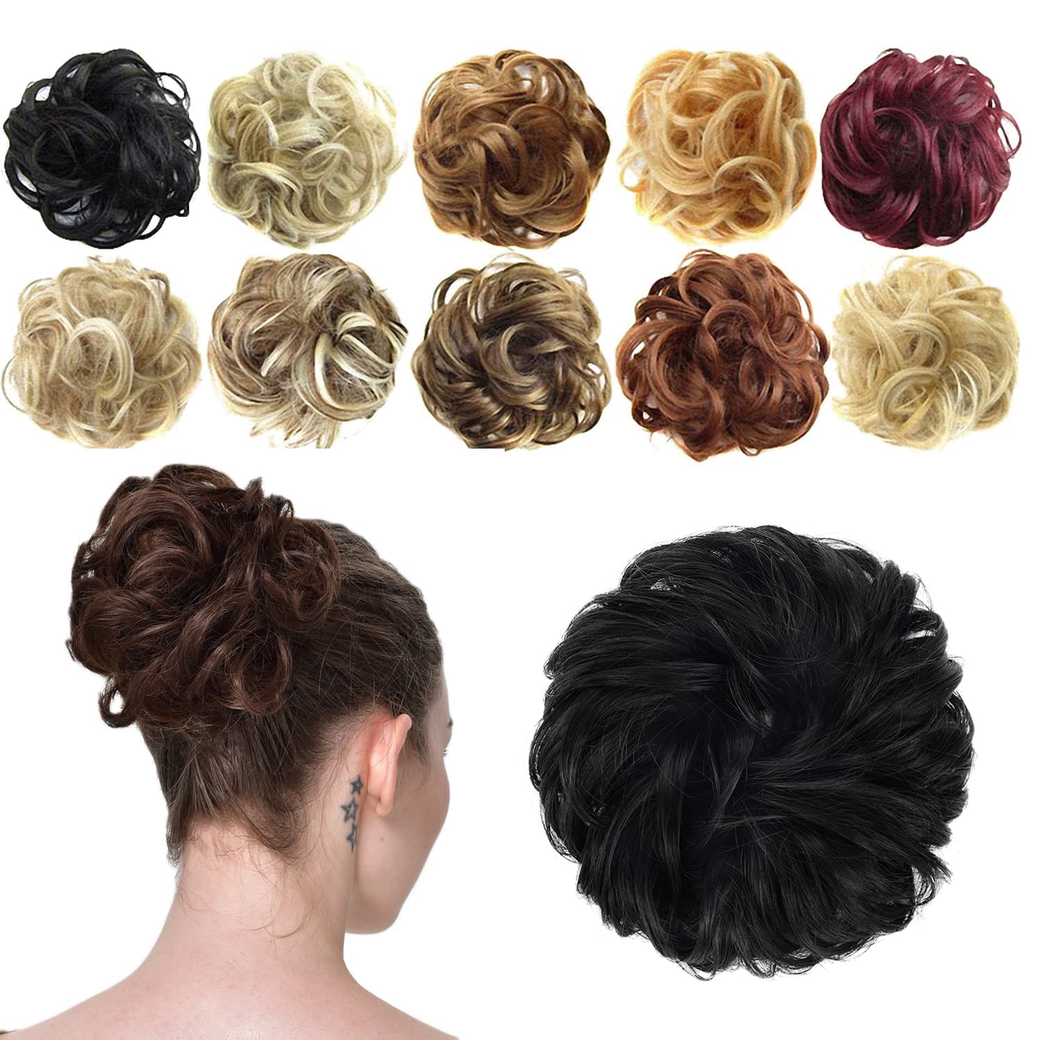- 【FUNCTION】Messy hair bun weighs 1.3 oz/pcs, perfect for adding volume and fullness to a updo or a ponytail. This eye-catching hairpiece bun is very soft and natural, well blending with your own hair.