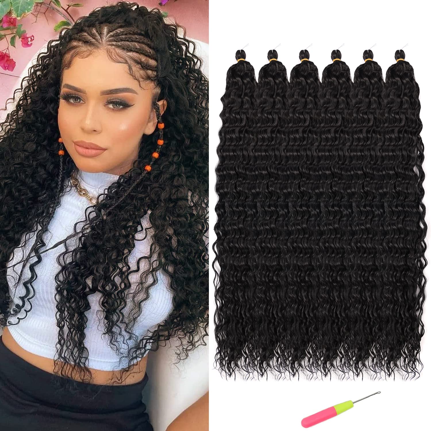• 🌹 Material:Deep Wave Crochet Hair Extensions 100% High Quality Kanekalon Synthetic Fiber.Smooth,Tangle-free,Soft,Light Weight,Close to real hair. Quick to Install, Cut short,braid & Easy Styling.Shawl hair, braided hair, ponytail, etc. according to your preference.