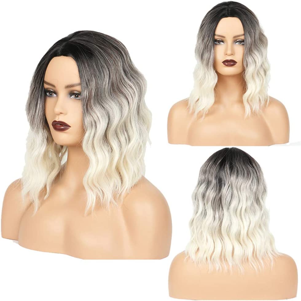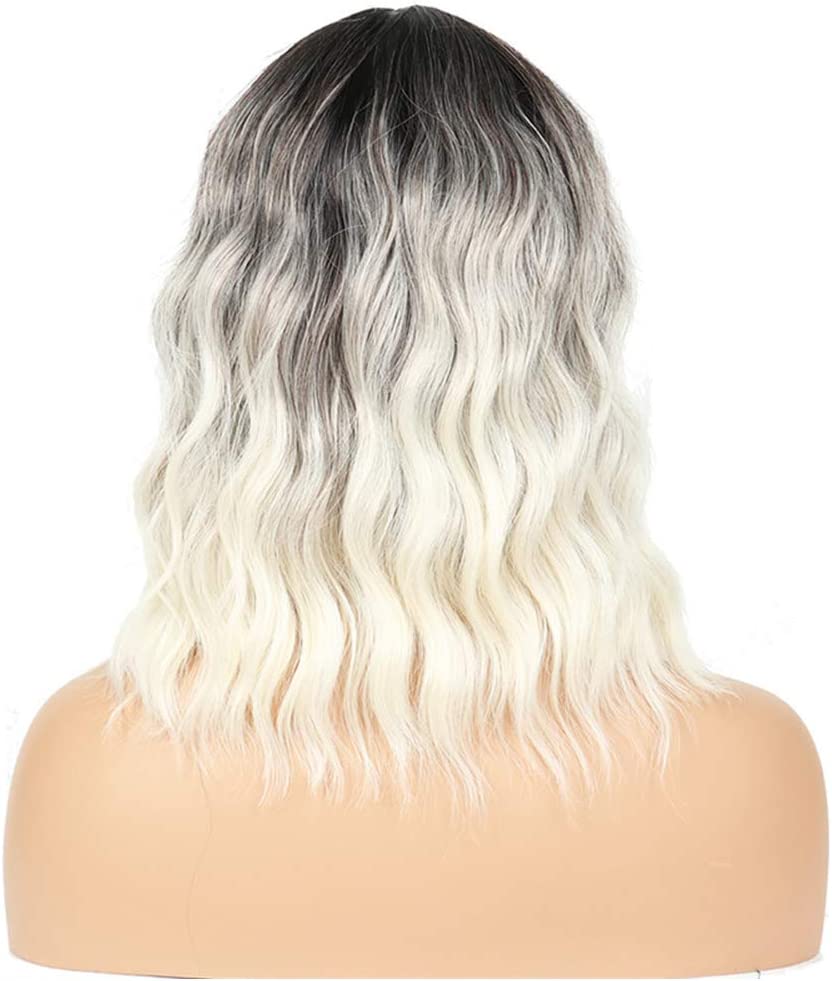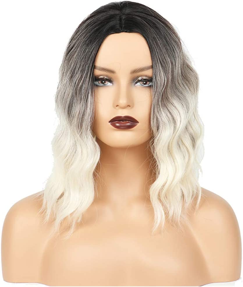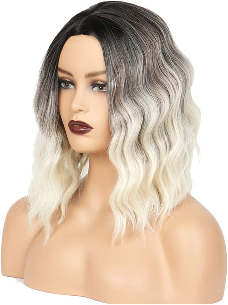 Ombre Short Wigs Nature Synthetic Wavy Bob Wig 14 Inch Shoulder Length Wig For Women Natural Looking Heat Resistant Wig