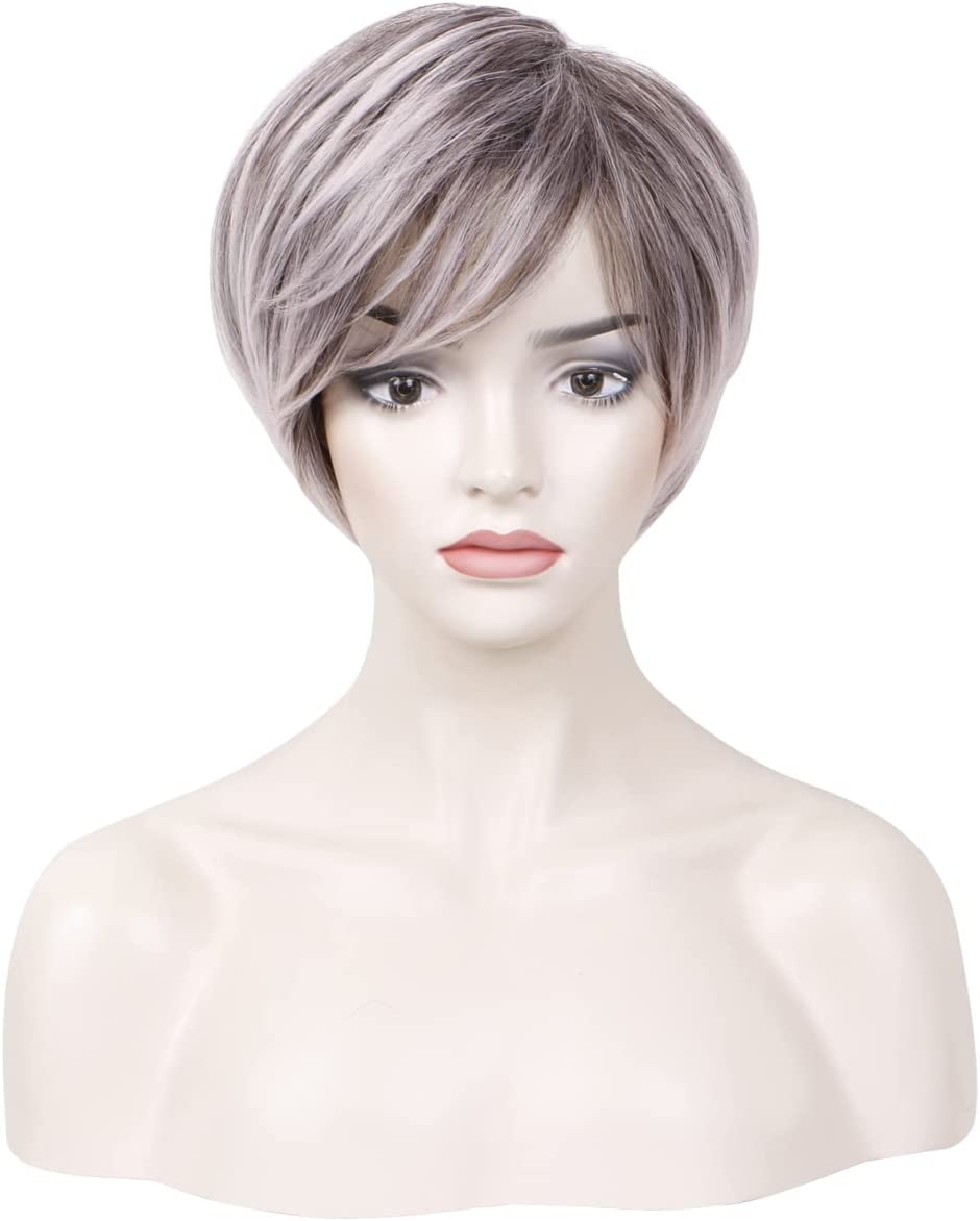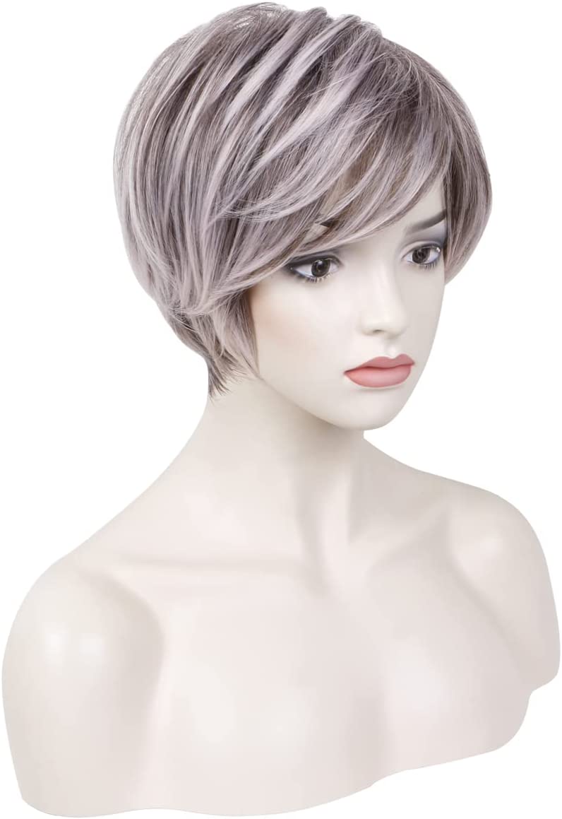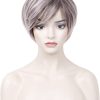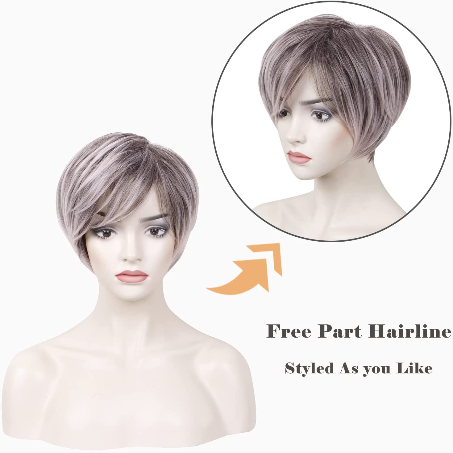Pixie Cut Wig Short Grey Wigs Synthetic Natural Straight Wig With Bangs For White Women Daily Wear And Cosplay Halloween