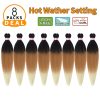 Pre Stretched Braiding Hair 8 Packs 20 Inch Ombre Synthetic Braiding Hair Natural Easy Twist Braids Crochet Hair Hot Water Setting Professional Soft Yaki Straight Texture (#1b/brown/beige)