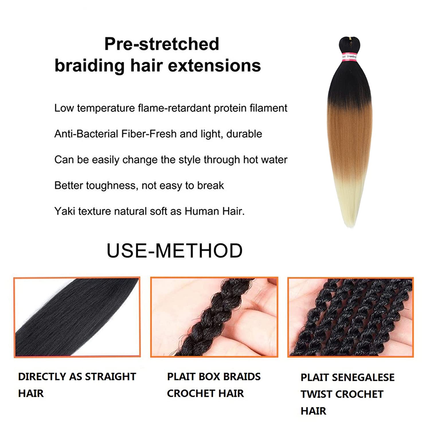 - Pre-stretched Braiding Hair Extensions is Yaki Texture Natural Looking and Feel Soft as Human Hair.