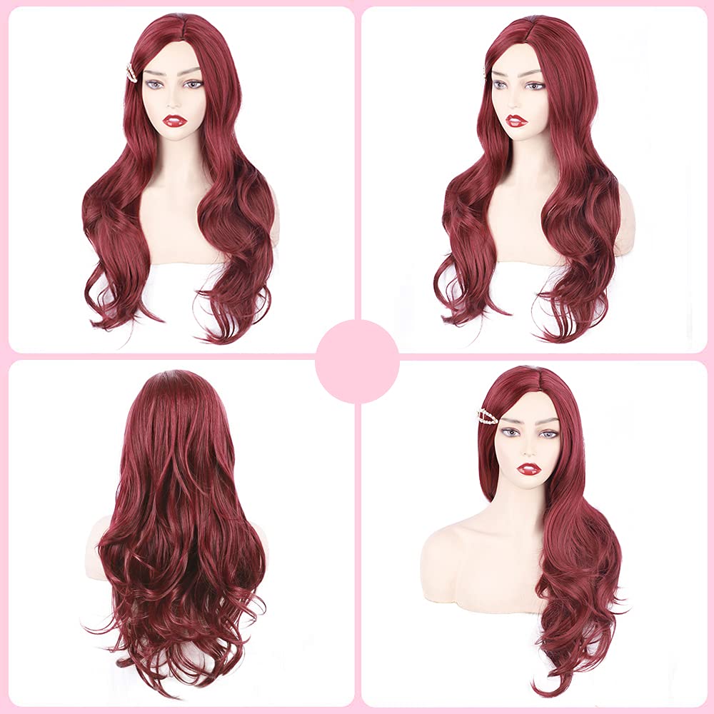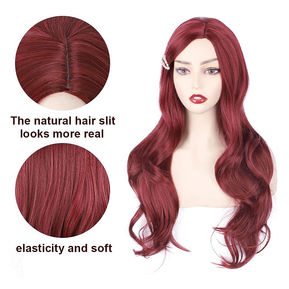 Red Wig for Women Long Wavy Wig Side Part Wig Curly Red Wig Synthetic Wig Burgundy Wig for Women Cosplay or Daily Use