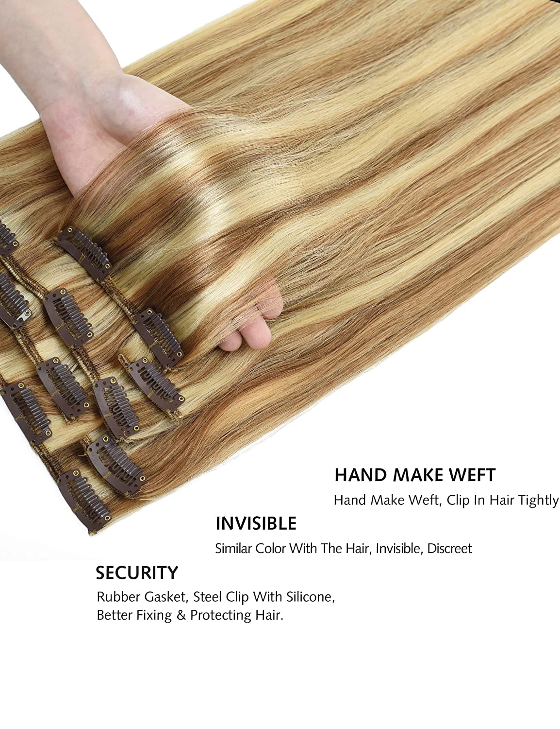 - 【100% REMY HUMAN HAIR EXTENSIONS】– Are you afraid to get a fake human hair extension on online shopping? clip in hair extensions are directly selected from healthy and young girl hair. Totally 100% human hair material and not mixing any other hair. Therefore, they can be straightened and curled freely by heat tools just like your own hair.
