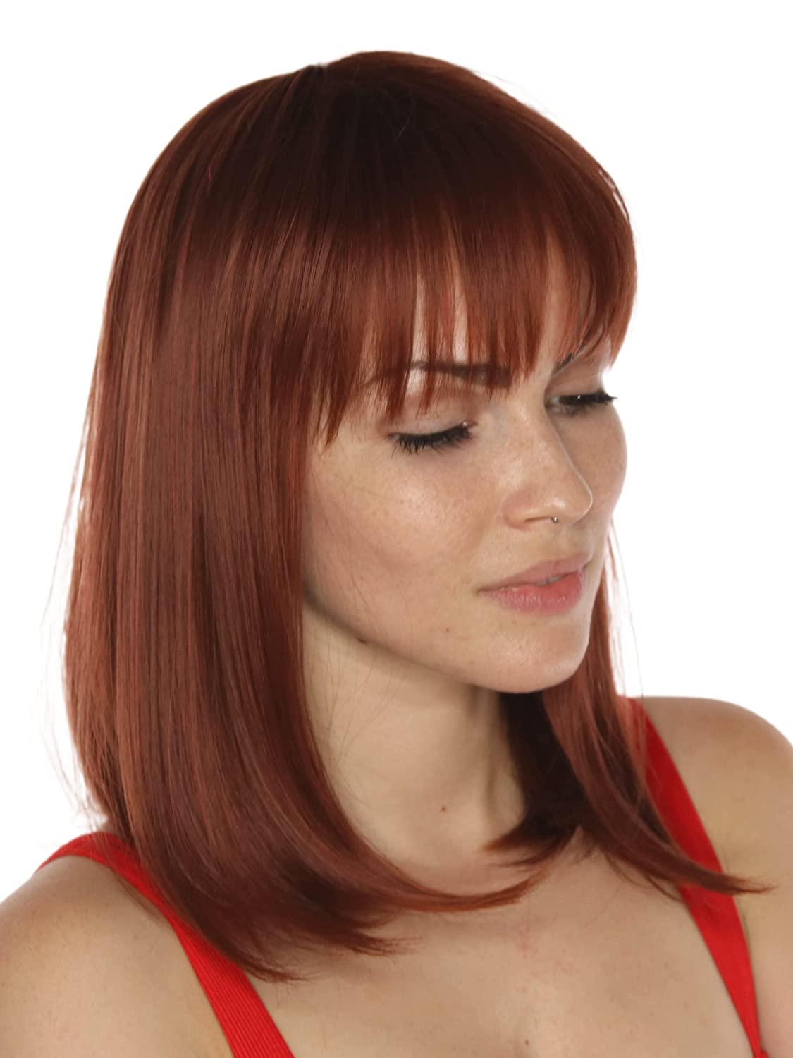 - Size: approx. 40cm. Medium & Shoulder Length Straight Wig Short & Straight Fringe Densely Woven & Soft For Beautiful Full Hair.
