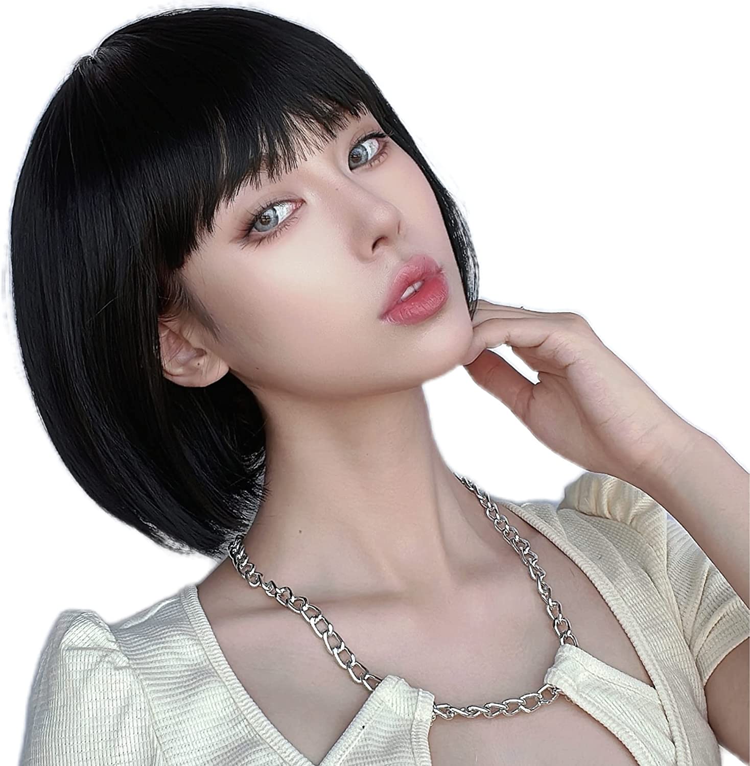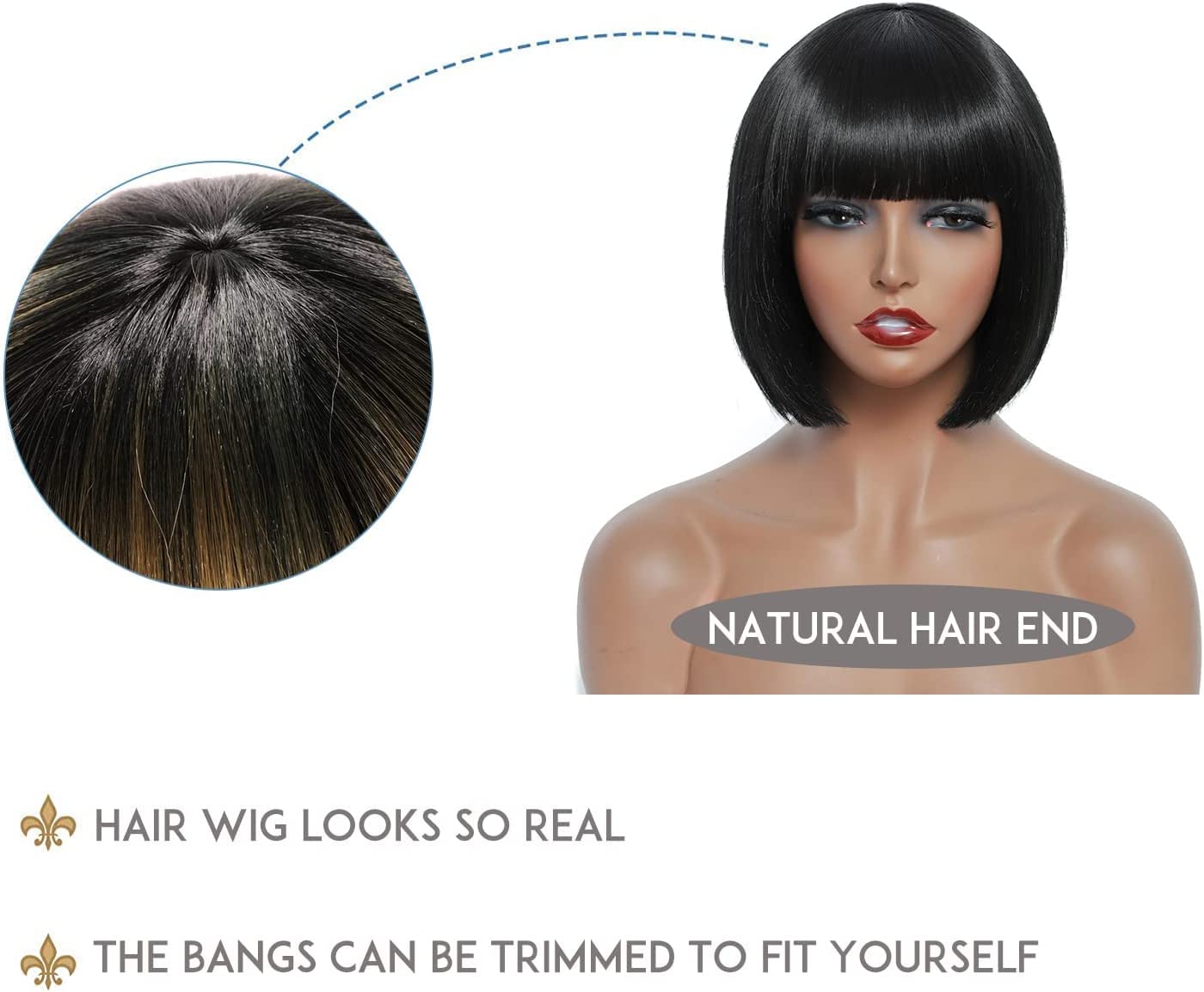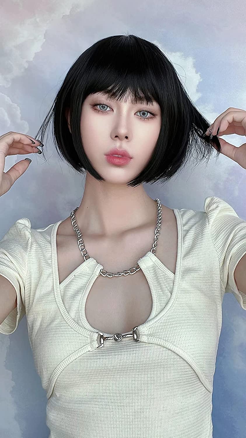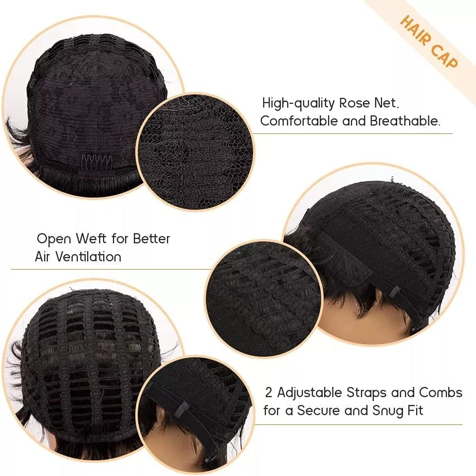 - Wigs with bangs: short wigs with bangs for young girl and woman. Straight texture Yaki weak, natural and super soft, easy to manage.