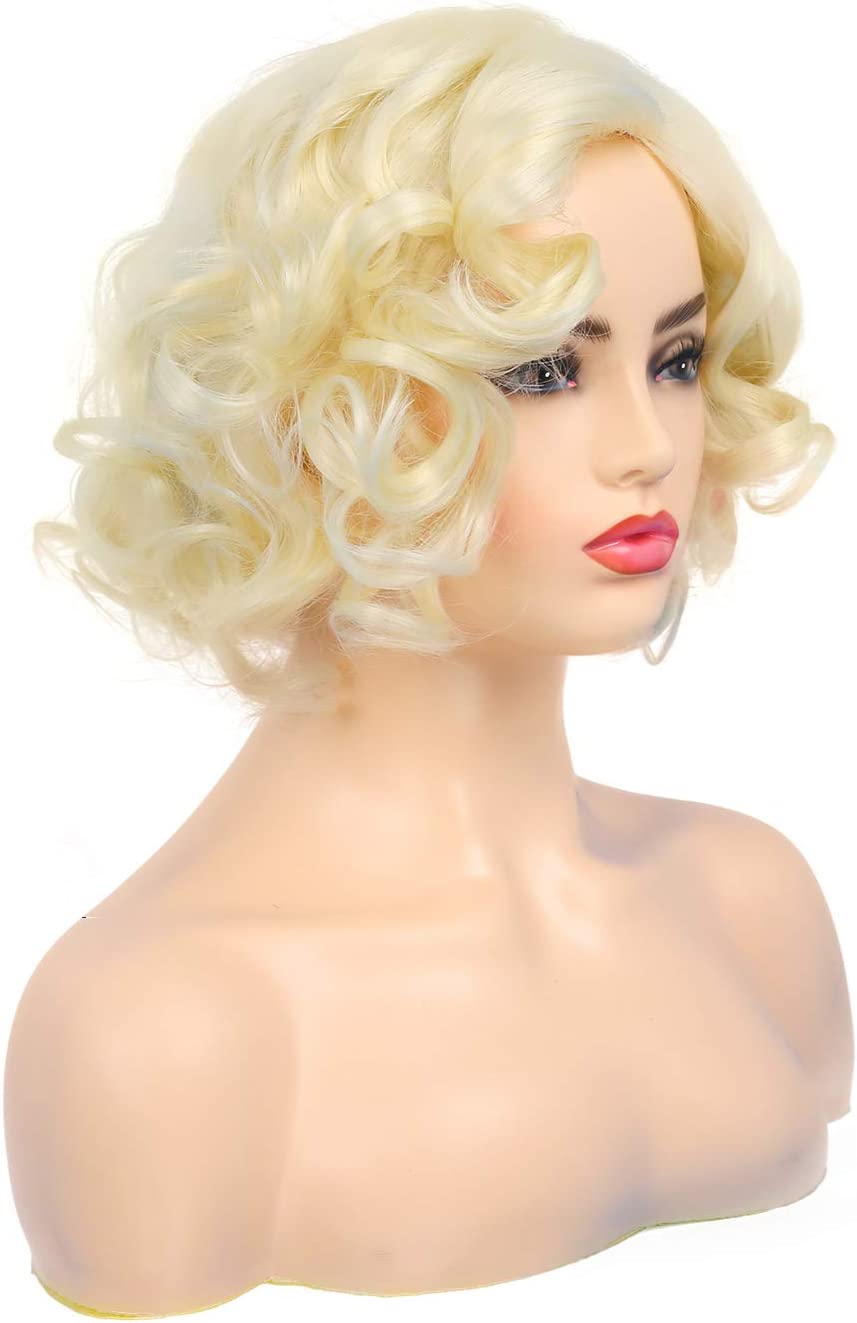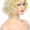 Short Curly Blonde Wig For Women Synthetic Natural Wavy Costume Wig For Cosplay Party