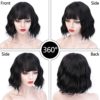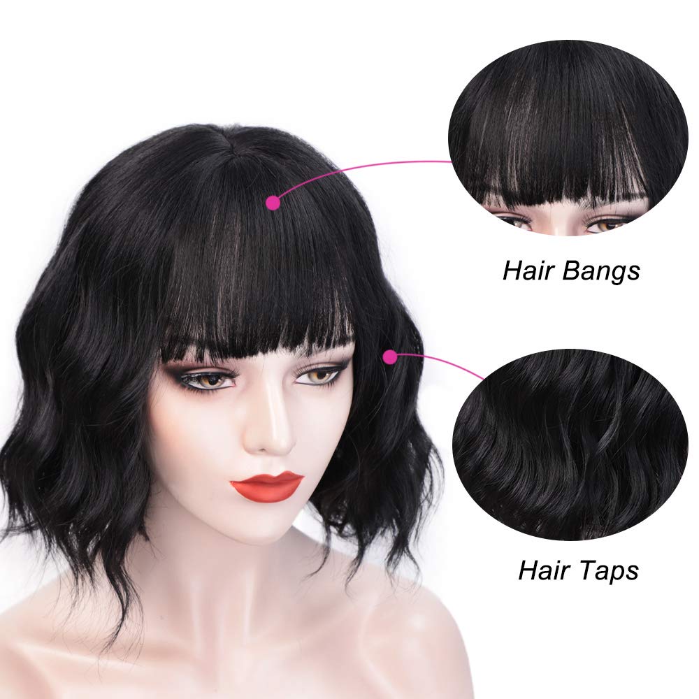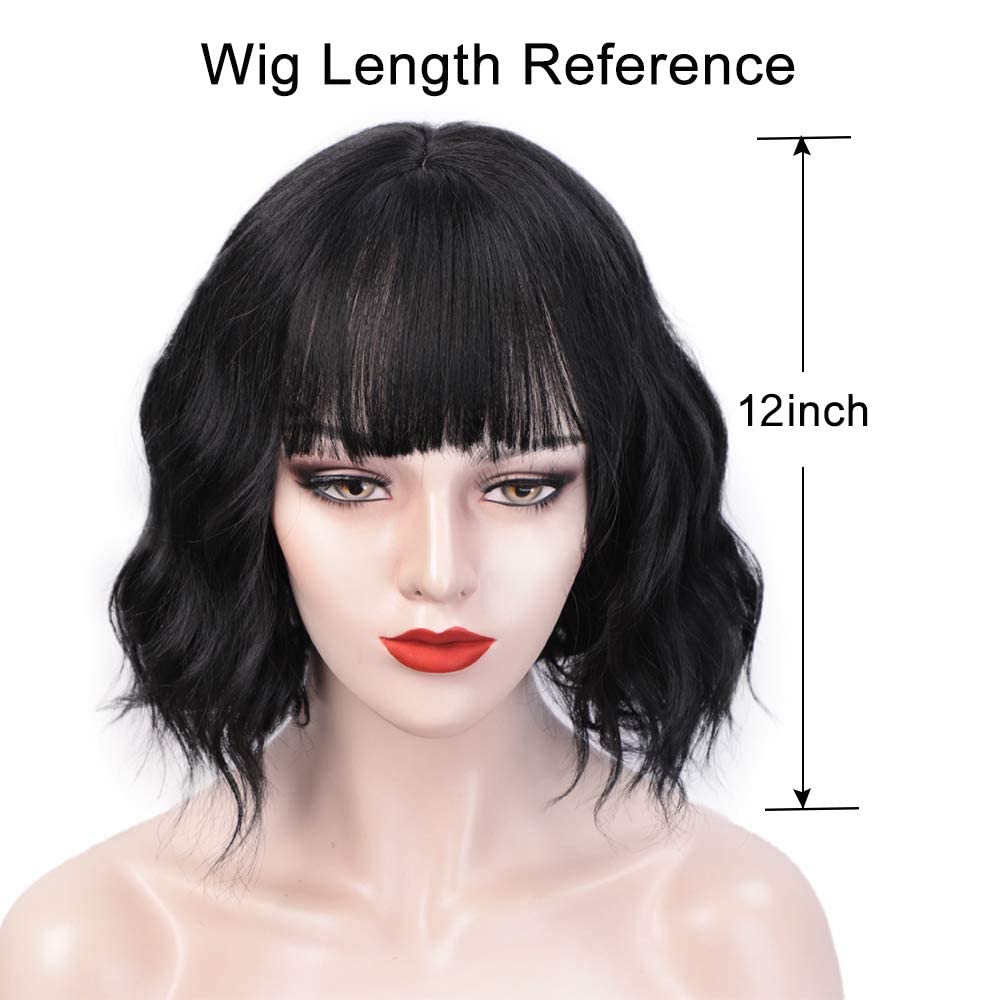 Short Curly Wavy Bob Wigs for Women Black Wig with Bangs Synthetic Heat Resistant Fiber Wig