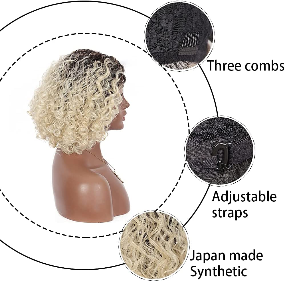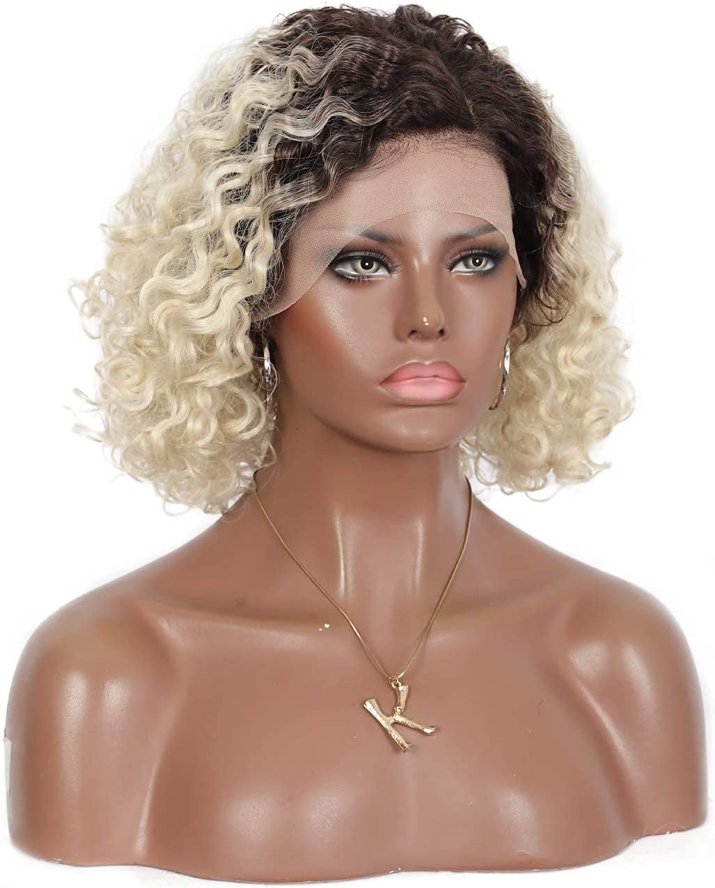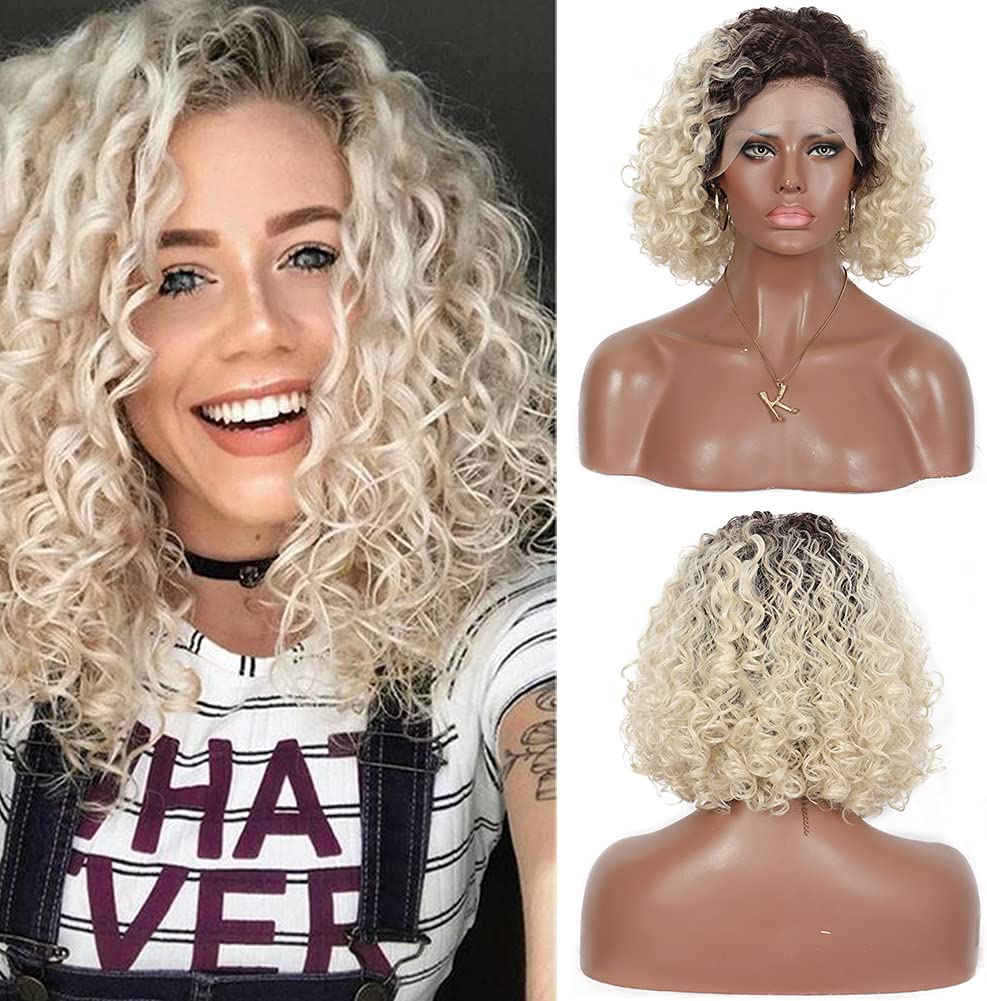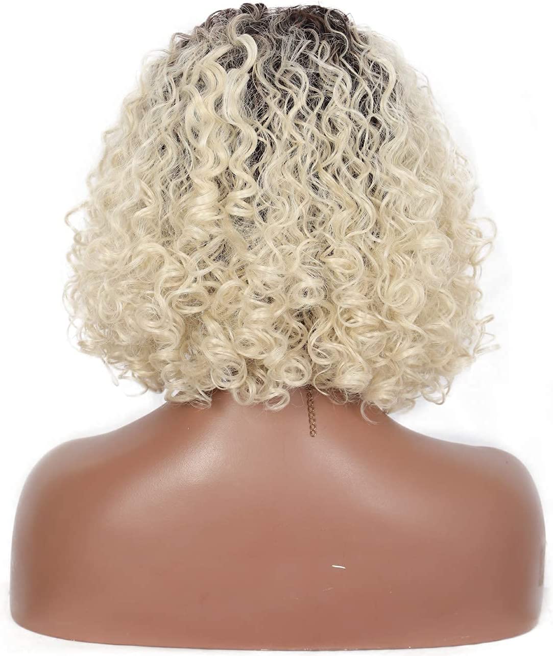 Short curly wig 11 inches blonde shadow lace curly woman synthetic wig natural brazilian hair wig