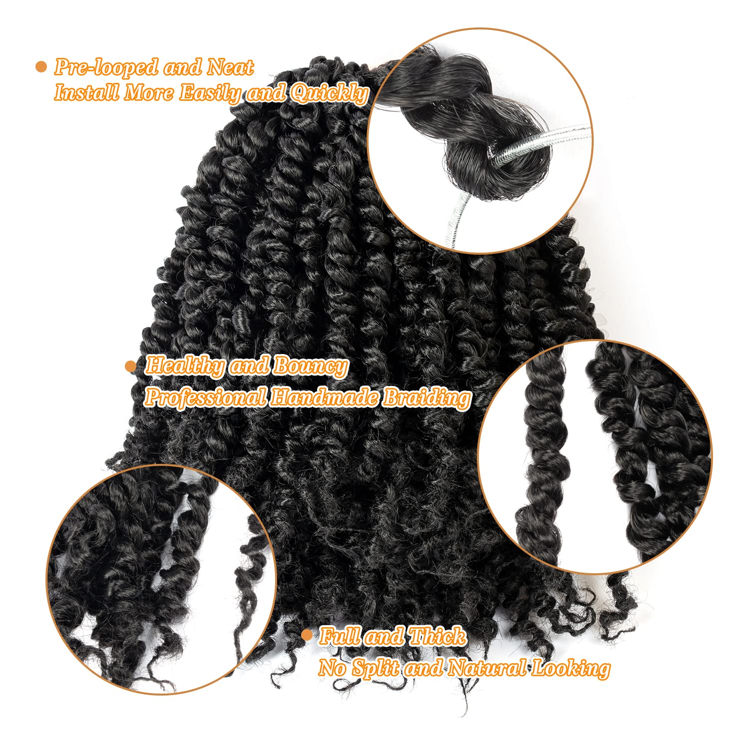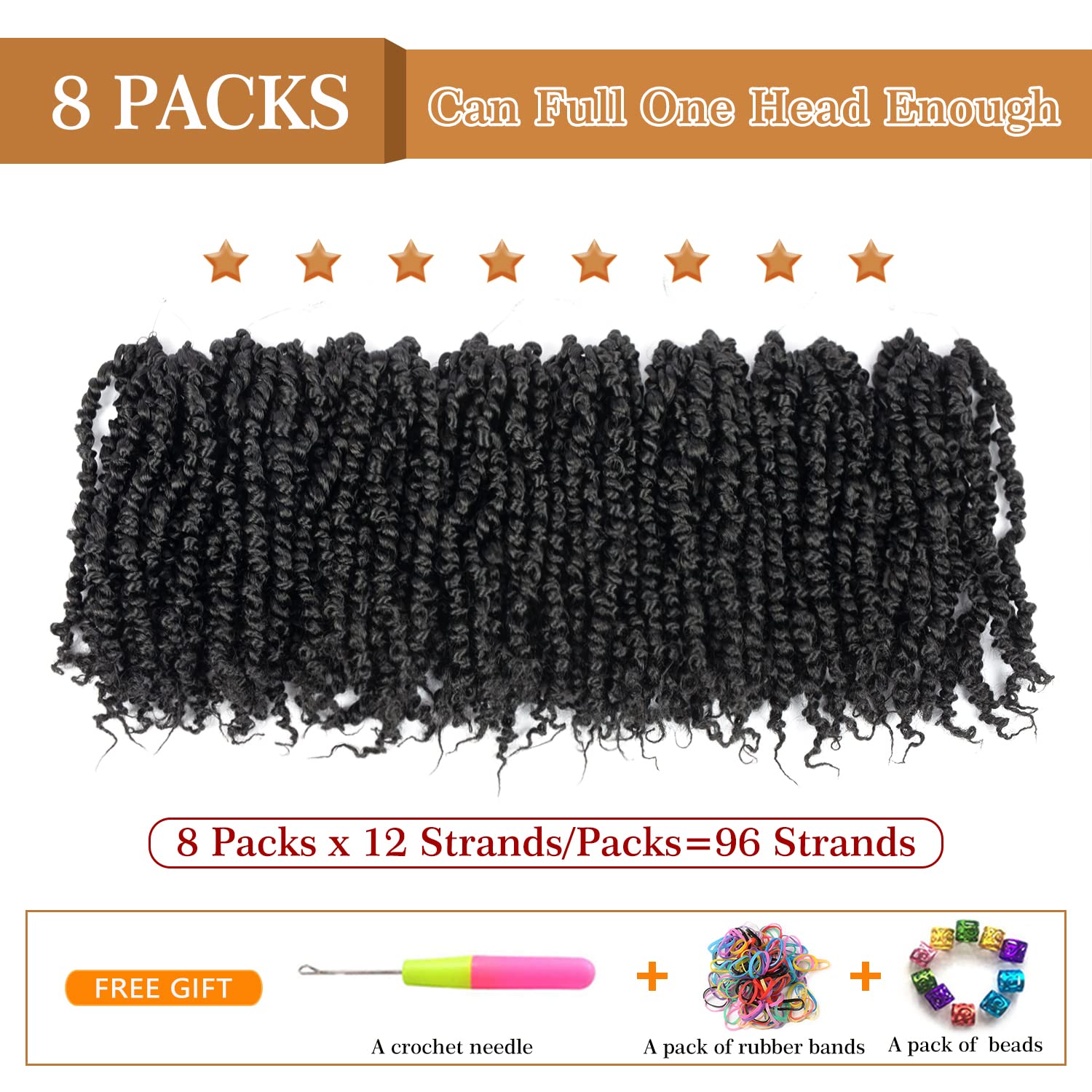 - 3.[Pre-twisted passion twists Specification]: 10inch short passion twist hair, 50g/pack, 12 strands/pack, 24 strands in total.