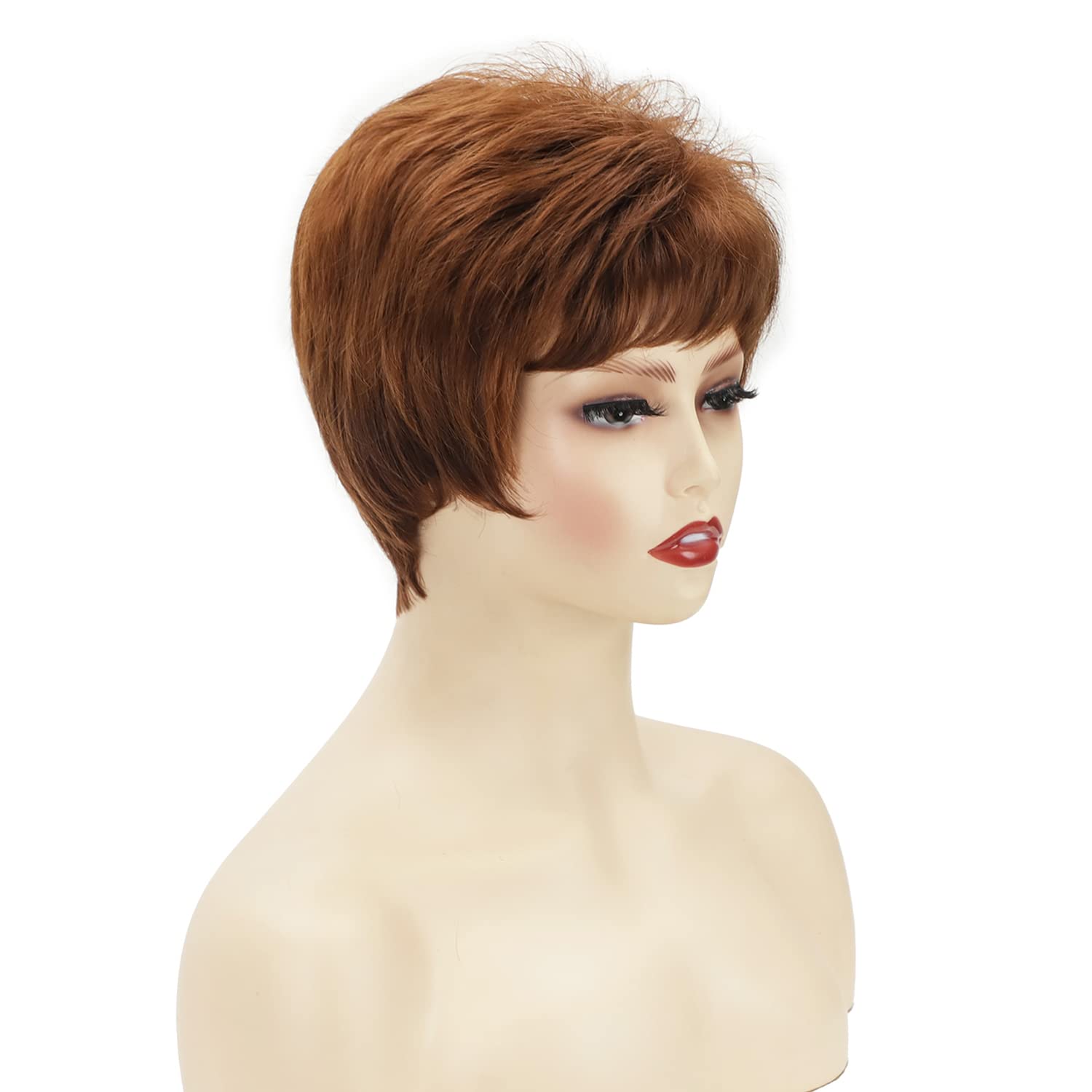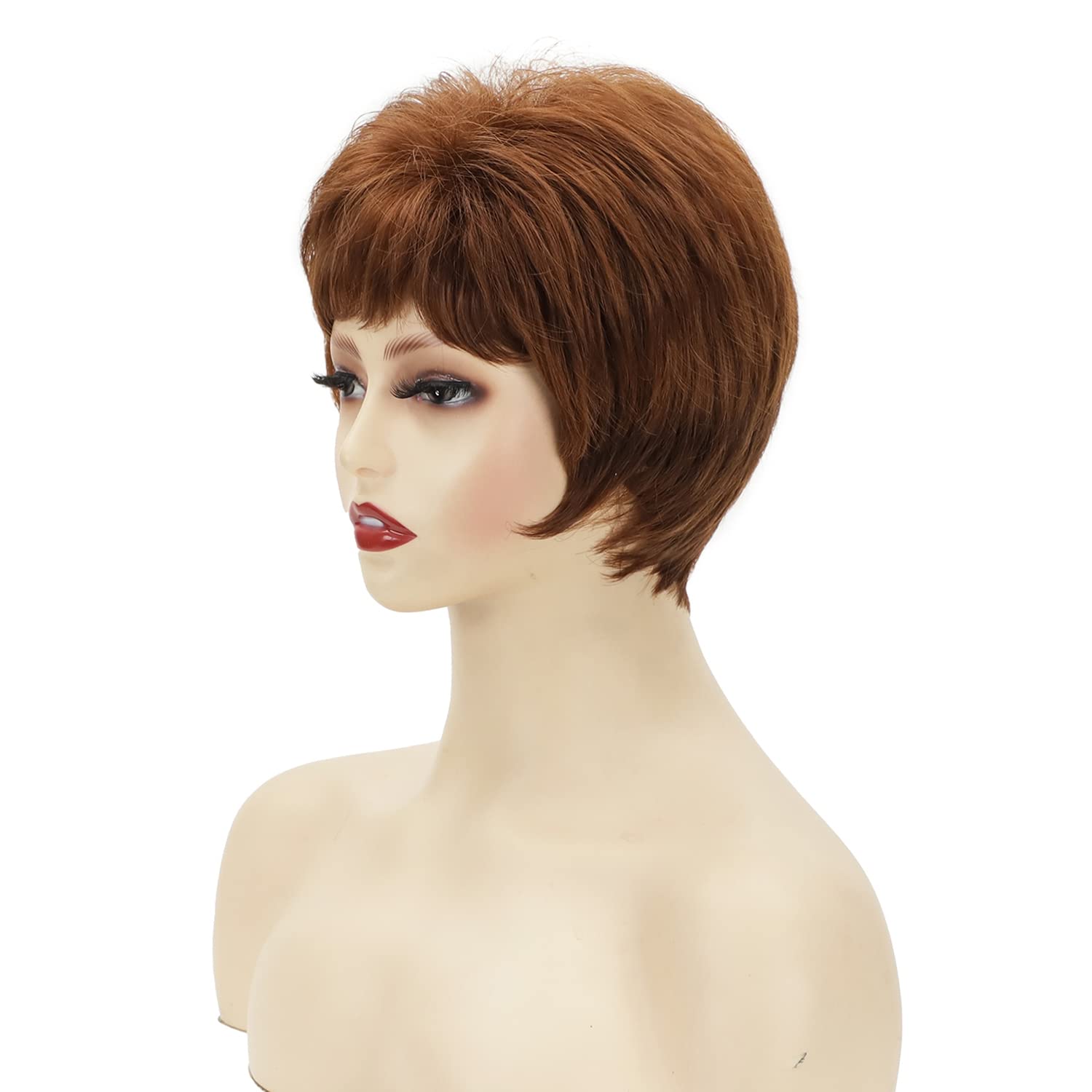 Short Pixie Cut Wigs for White Women Brown Auburn Short Wigs with Bangs Natural Layered Synthetic Hair Wigs