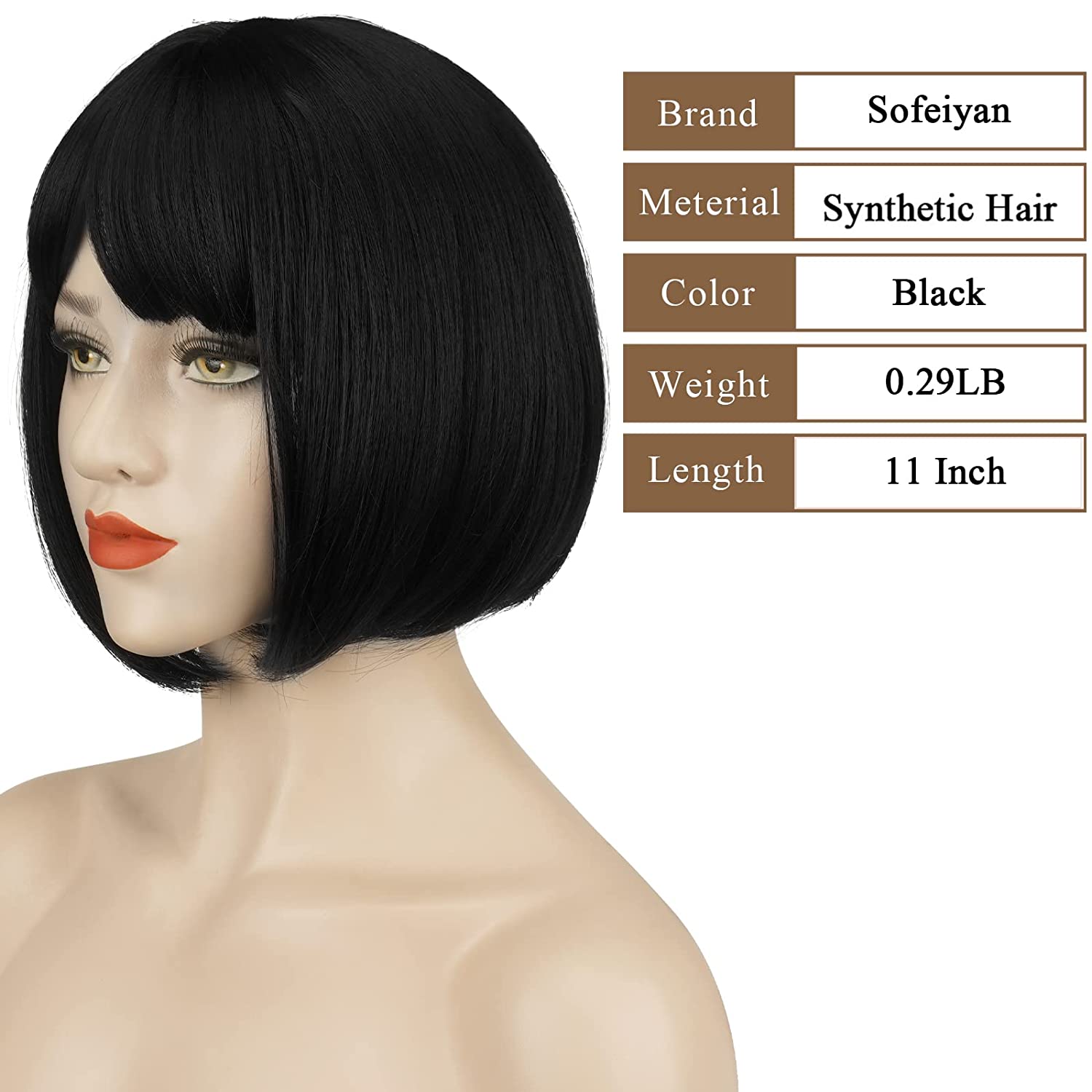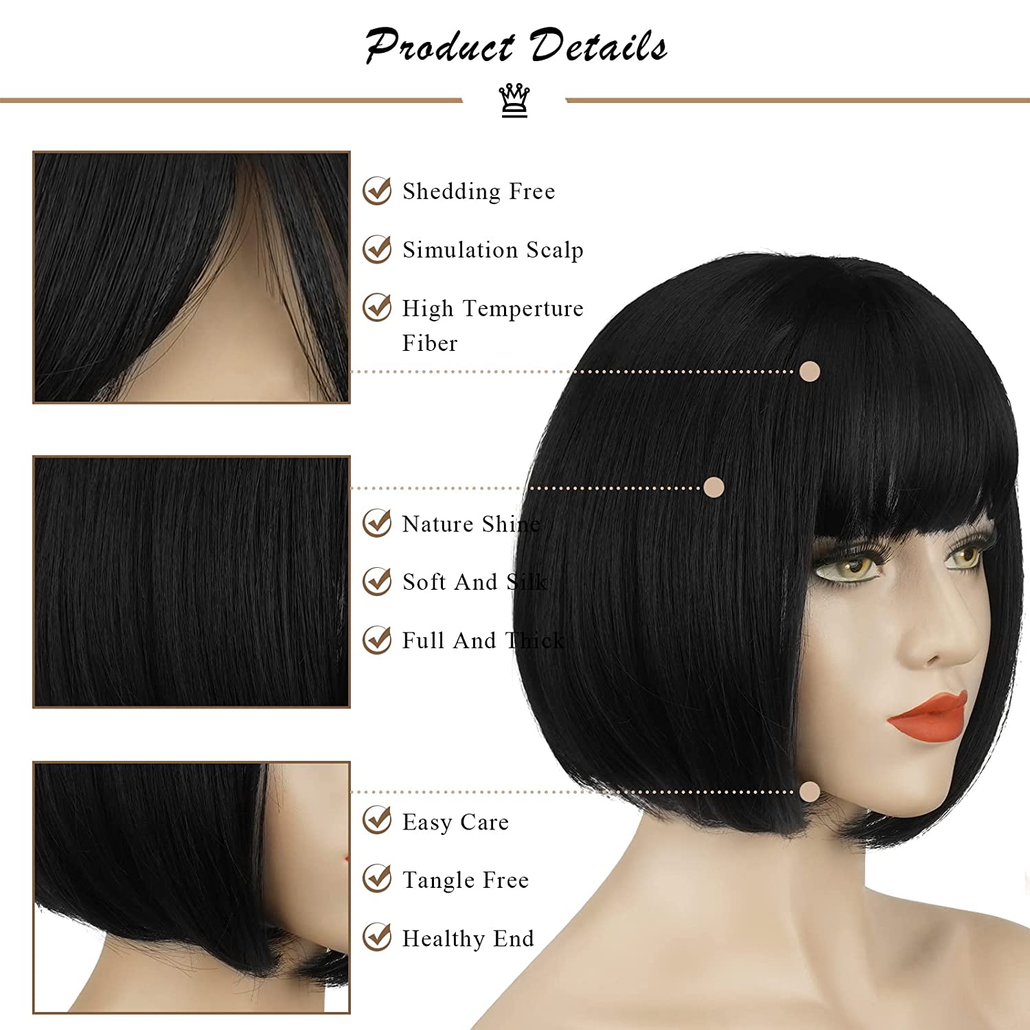 Short Straight Bob Wigs with Bangs 11 inch Synthetic Daily Party Cosplay Hair Wig for Women