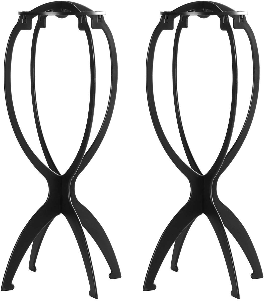 Short Wig Stand For Wigs 14.5 Inch Portable Folding Wig Dryer Durable Travel 2 Pack Black