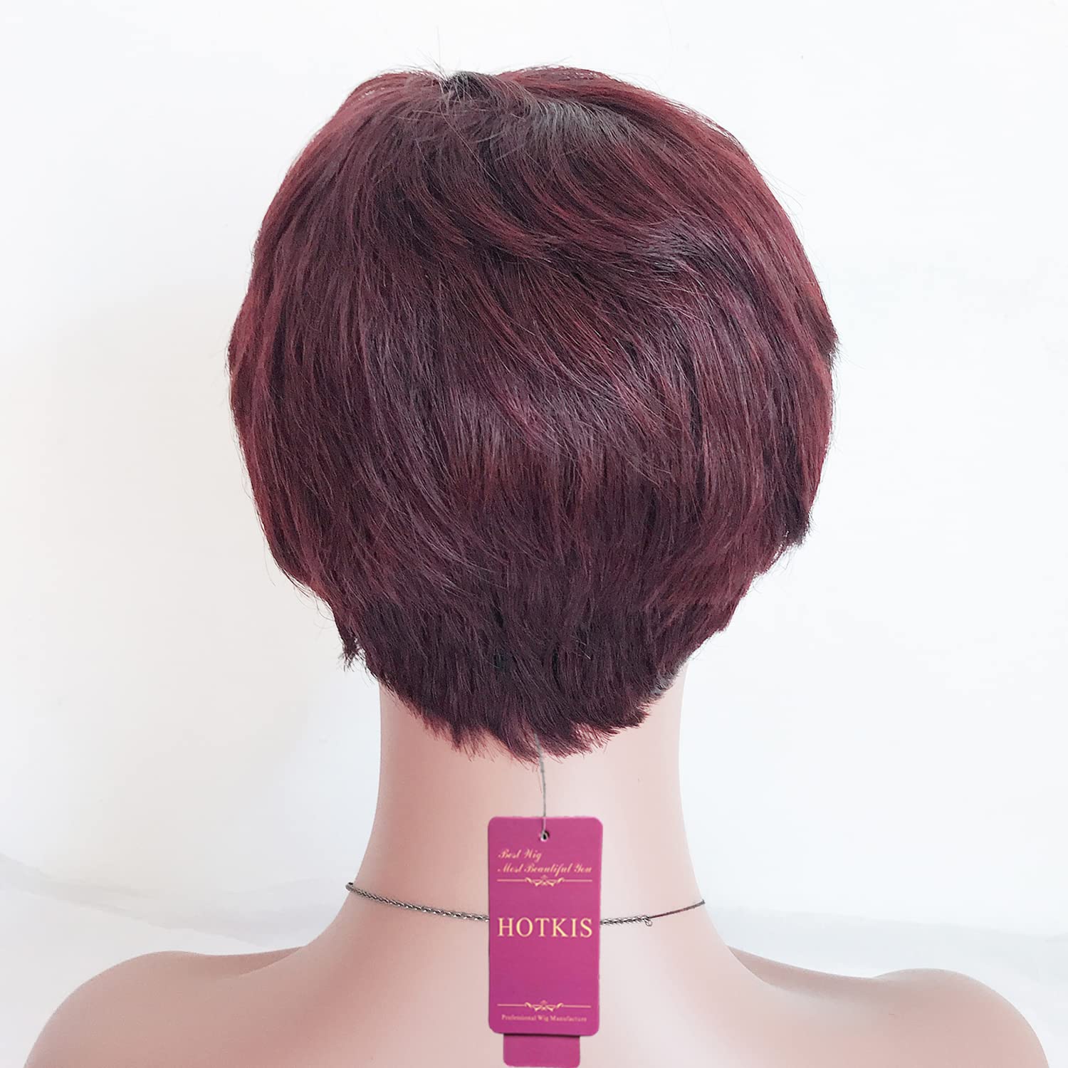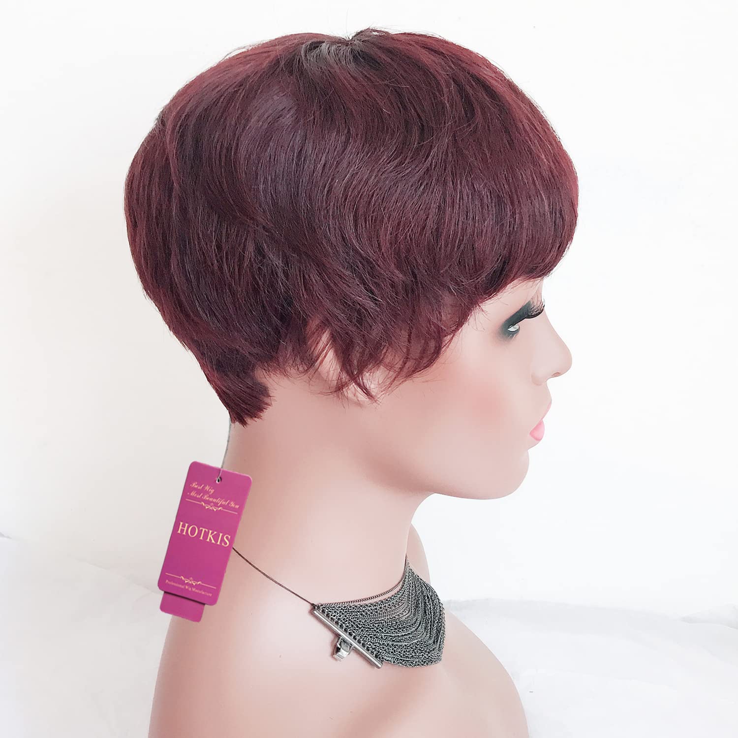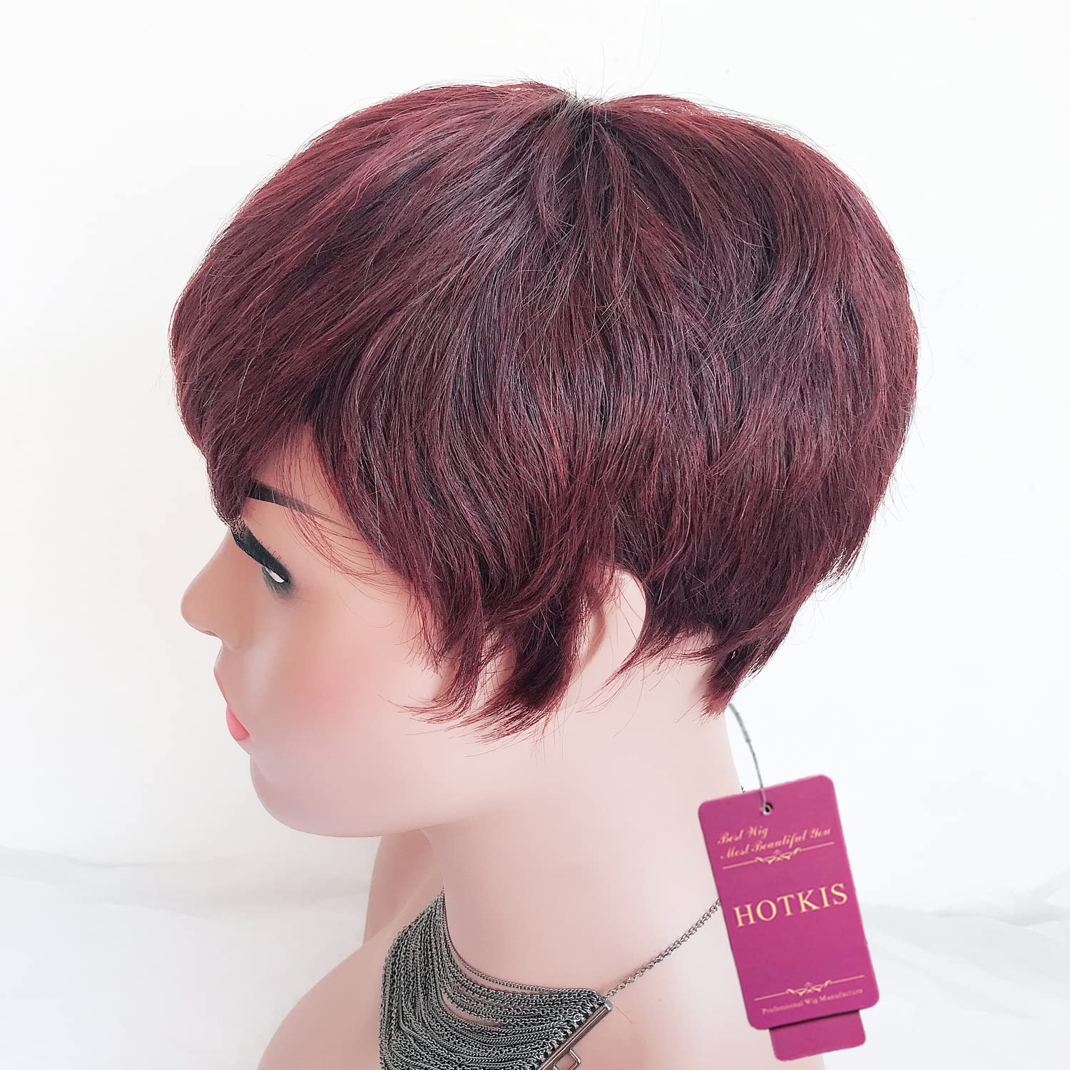 Short Wigs Human Hair Short Pixie Wigs for Black Women Short Wigs Human Hair Pixie Cut Wigs for African Americans Burgundy Short Pixie Wigs (99J)