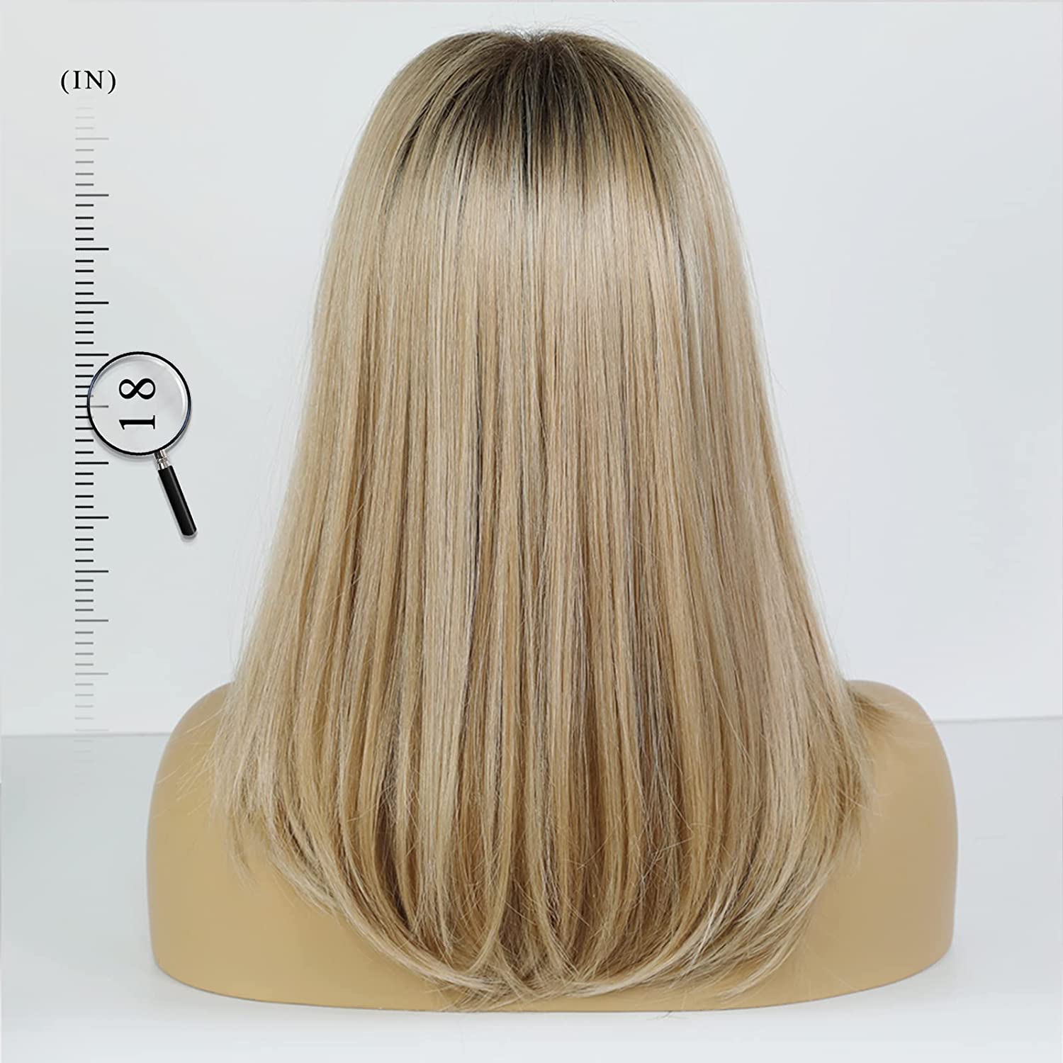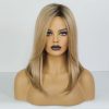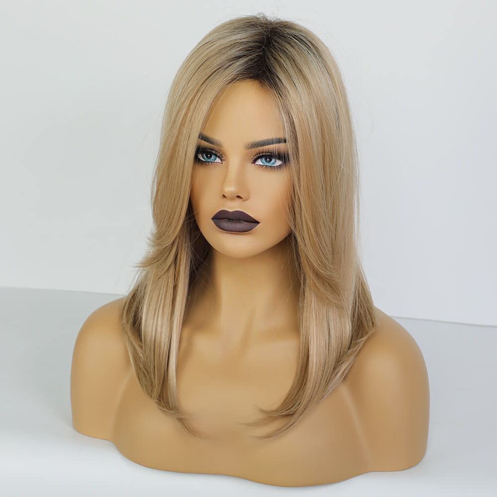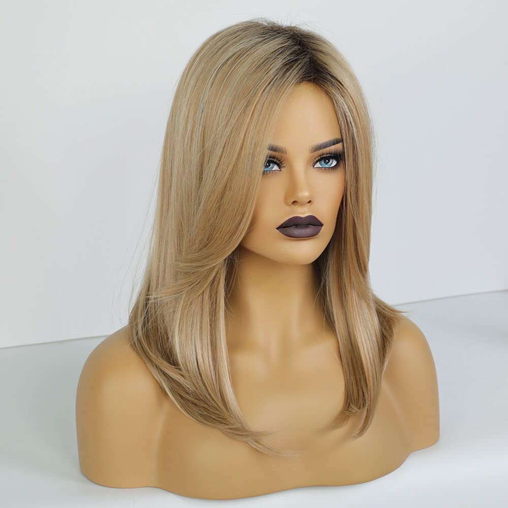 Smooth Blonde Wigs for Woman Future Synthetic Hair Wig with dark roots texture and silky