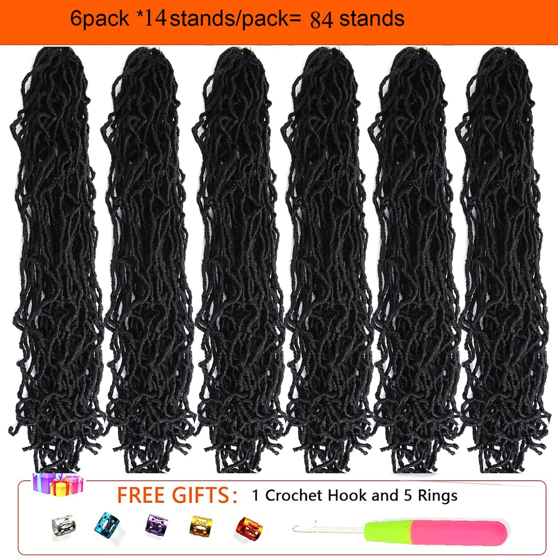 - 【Package Details】: 6packs 18inch Soft Faux locs crochet braid 21strands/pack, Weight:175g, Total 126stands with free gifts, 6pack Can Make a Very Full Head.