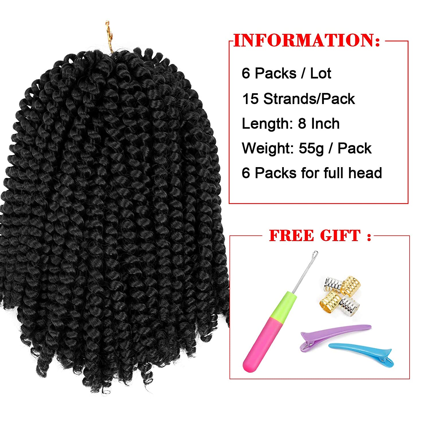 - 2. Hair Featural: Spring Twist Hair. Size: 8 Inch Length. Weight: 55g/Pack. 15Strands/Pack
