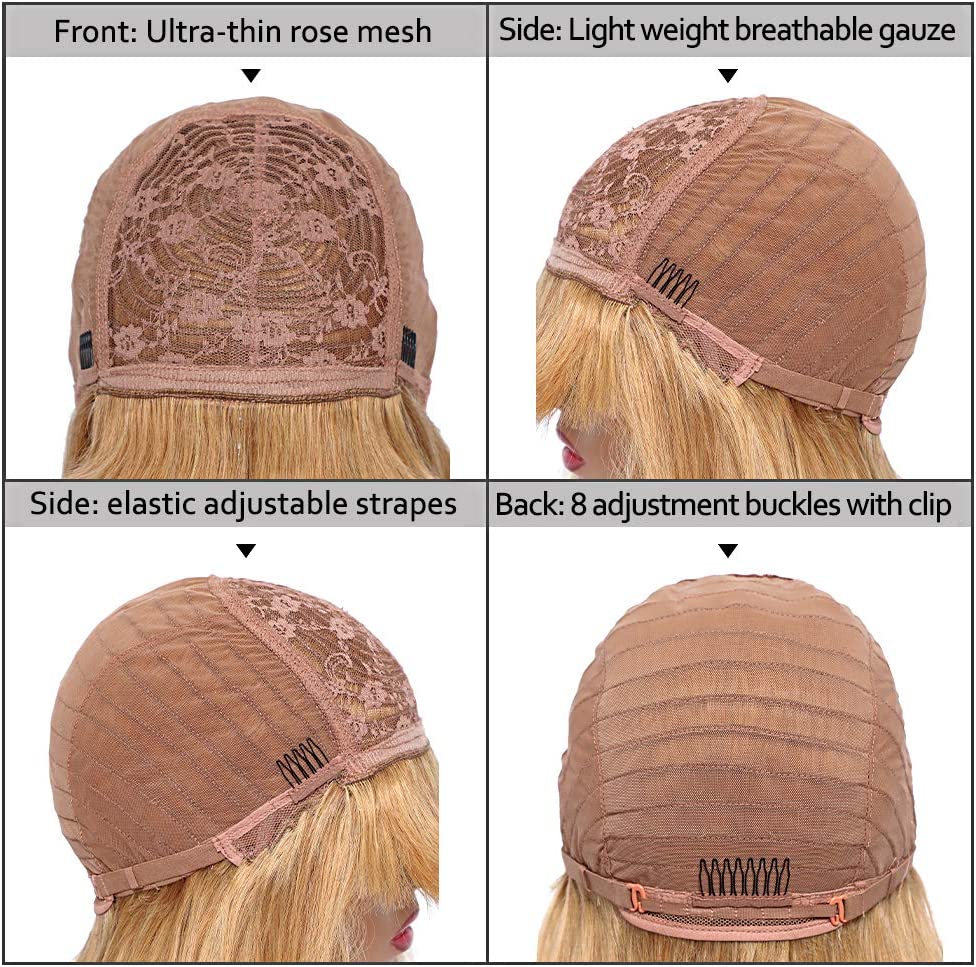 - Features: Pretty and Fashion Real Hair Wig for Women, Wigs with Bangs Make a Natural Looking, Can be Straightened, Curled, Dyed and Styled as Your Own Hair. Elastic Net Cap Suitable for Most Head Size, No Chemicals and No Bad Smells.