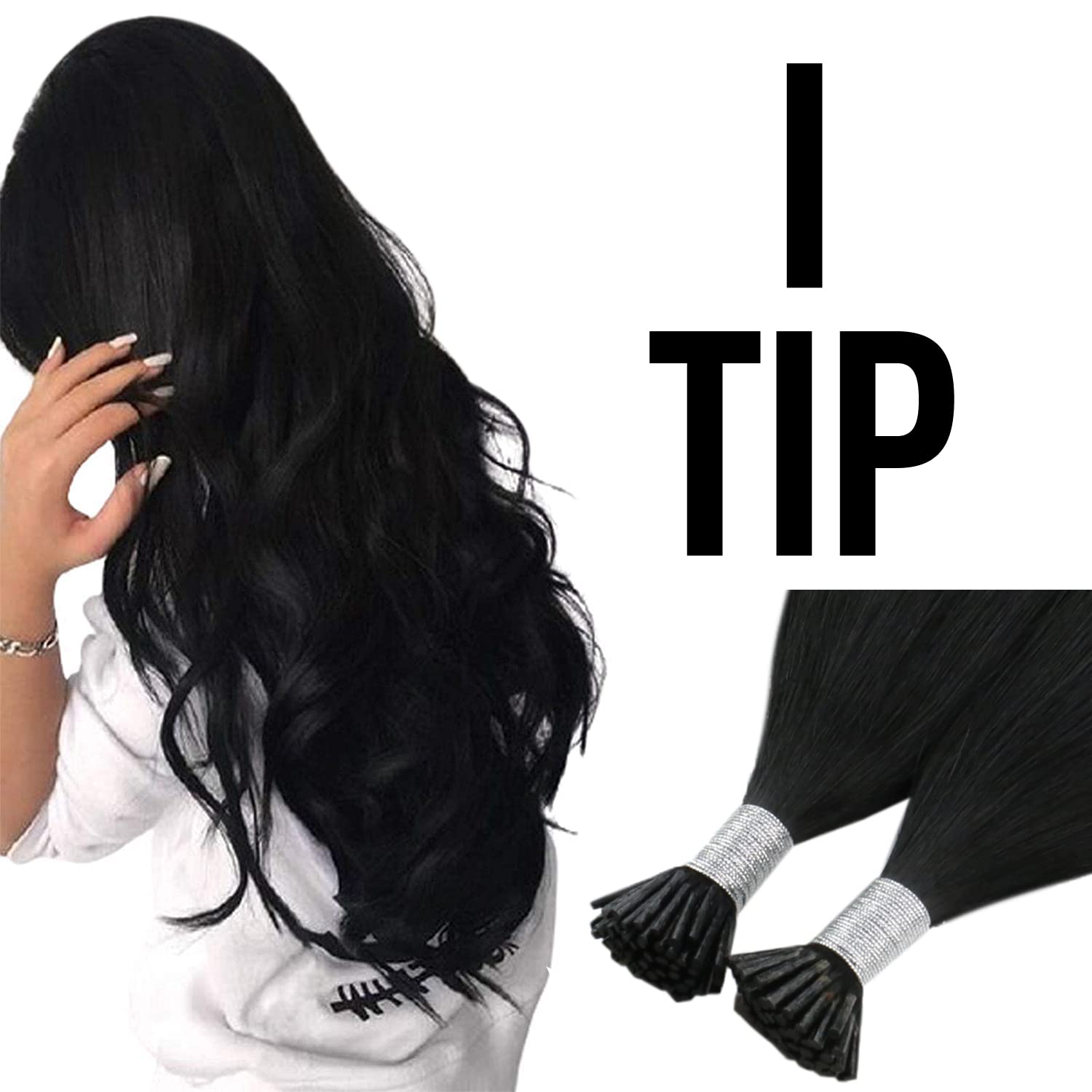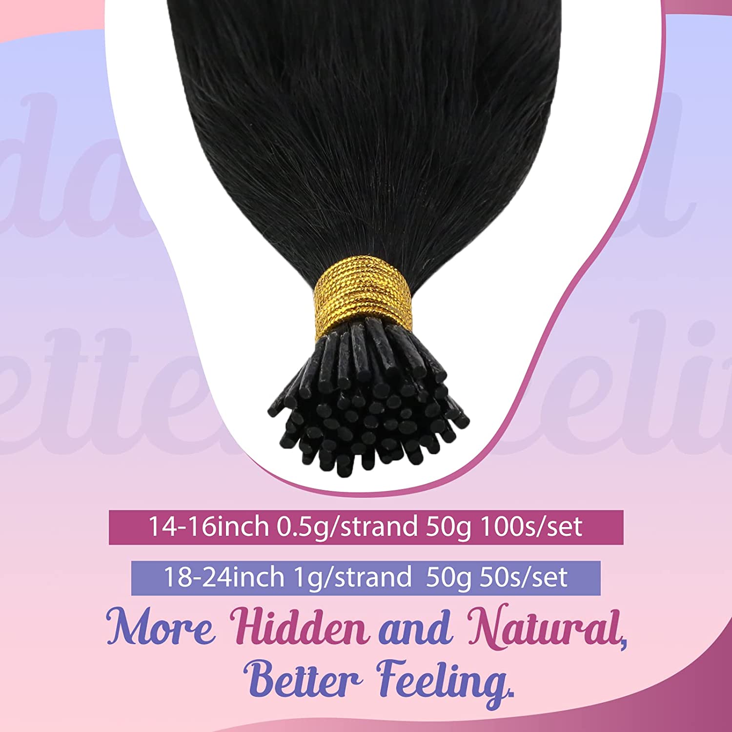 Sunny I Tip Hair Extensions Human Hair Black 14inch 50g/pack Itip Human Hair Extensions Black Invisible Soft Straight I Tip Human Hair Extensions Black Cold Fusion 100strands