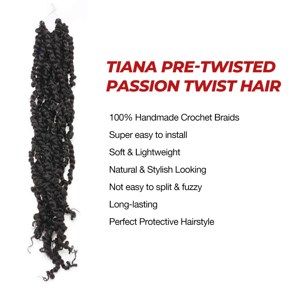 Tiana Passion Twist Hair – 20 Inch 8 Packs (12 Strands/pack) Pre-twisted Passion Twists Pre-looped Crochet Braids Made Of Bohemian Hair Synthetic Braiding Hair Extension (20 Inch, #1-8p)