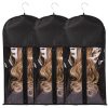 Wig Bags Storage With Hanger- 3pcs Hair Extensions Storage Bag Hair Hangers For Extensions Hairpieces Storage Holder (black)