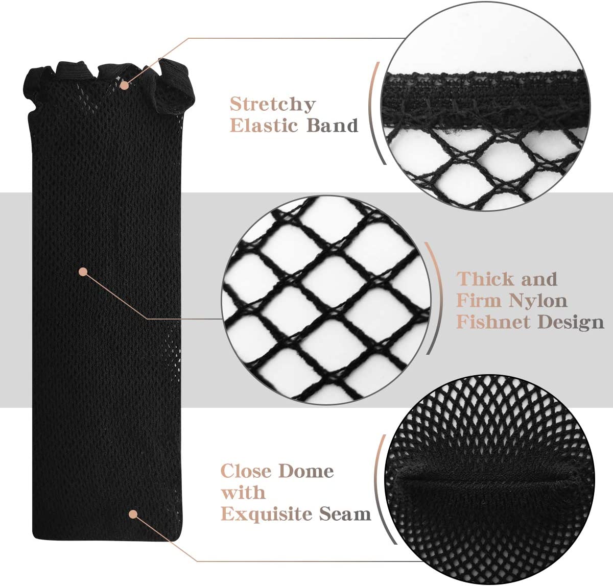 Wig cuff, wigs net, wig caps, black, 3 pieces