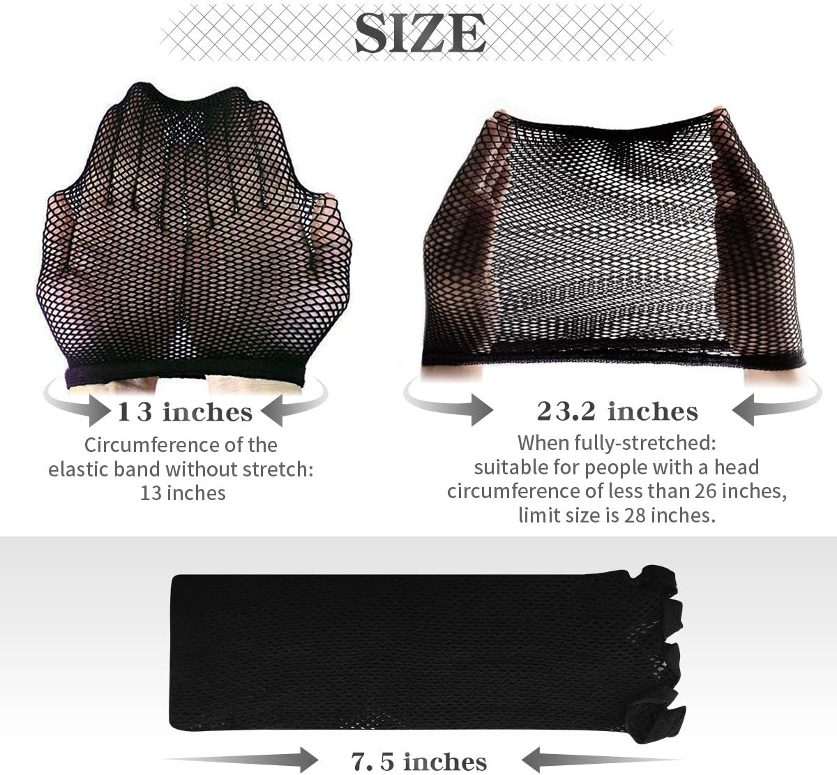 - The open end of our caps for mesh wigs can reach 23.2 inches when it is completely elongated, it is suitable for different sizes of the head. li>