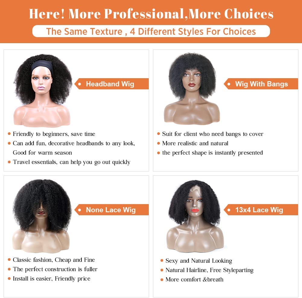Afro Wig None Lace, Afro wig with bang, Headband wig