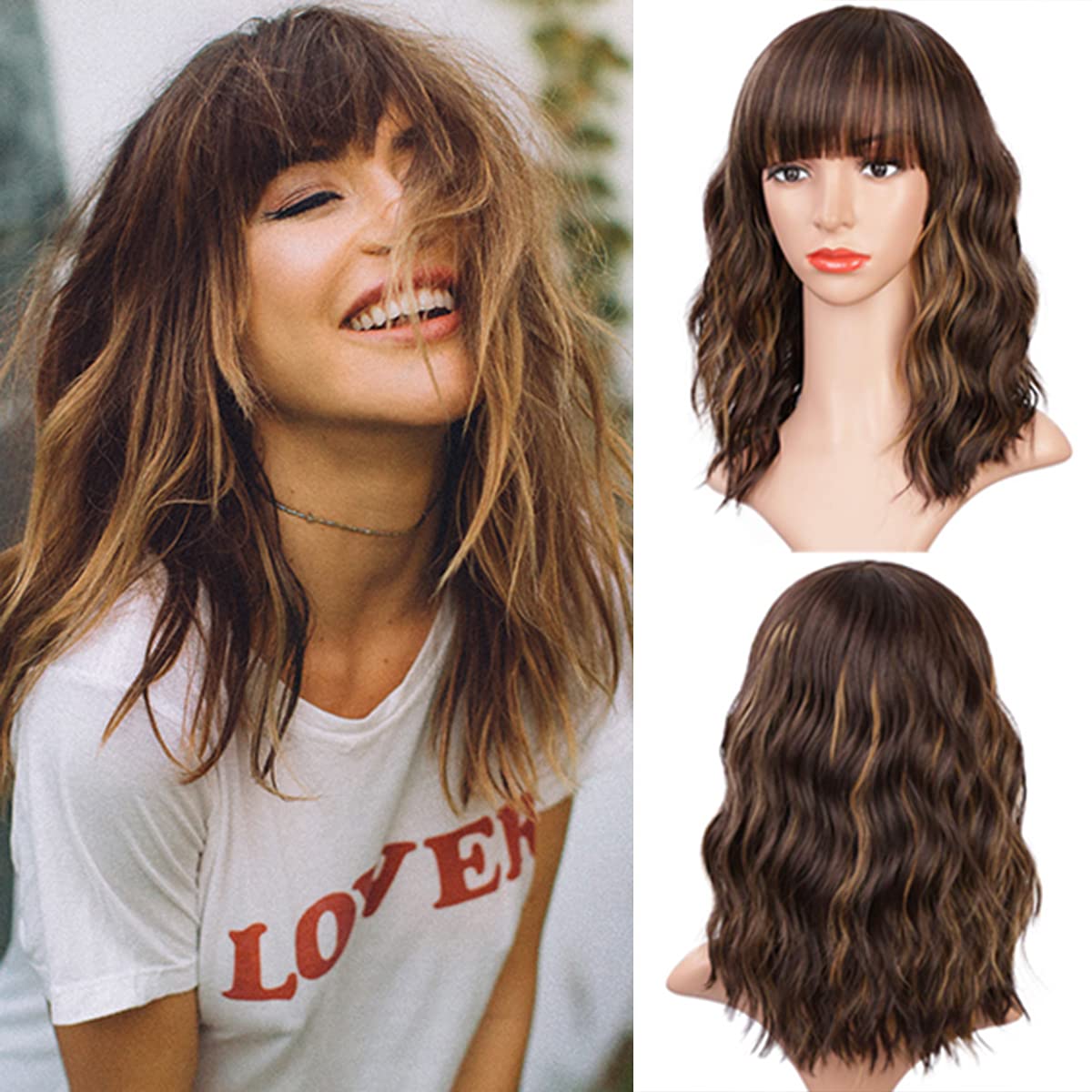 - Style: Pink shoulder length women’s curly wig, natural look and soft feel, good texture, strong and long-lasting style, feels and moves like real hair. It will not damage your own hair, and it can help you to look more radiant and be more confident. We take all our own photos of the wigs fresh out of the box, so you can be reassured that the wig you choose today looks exactly like the one you see in the photo.