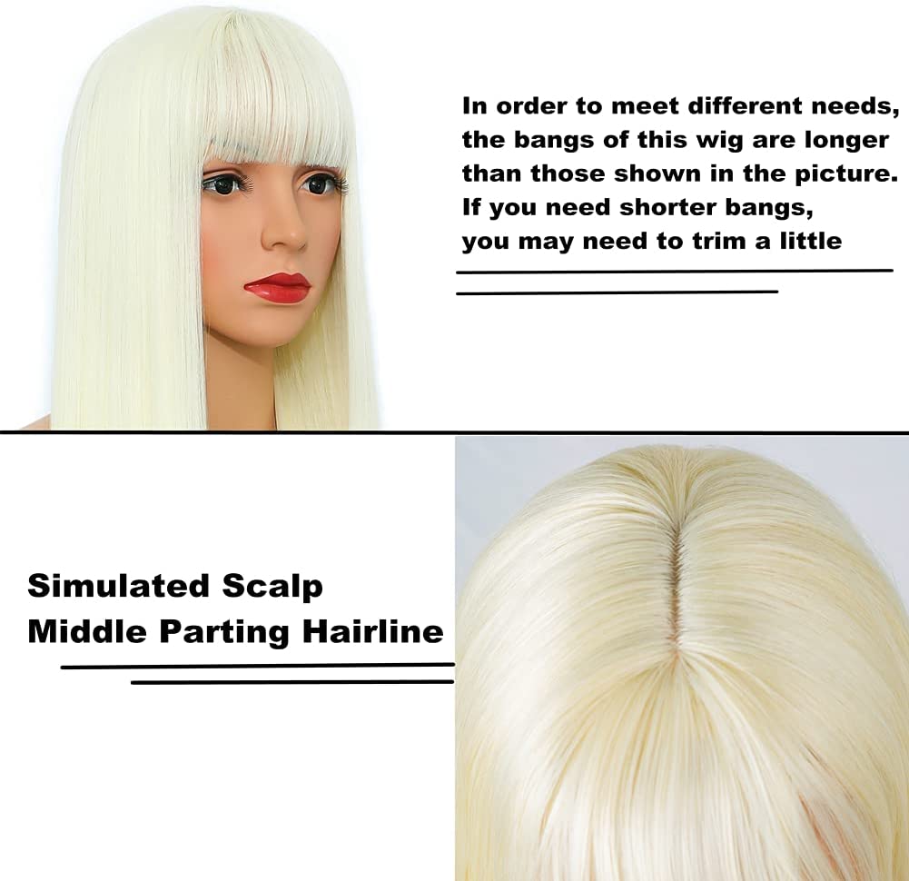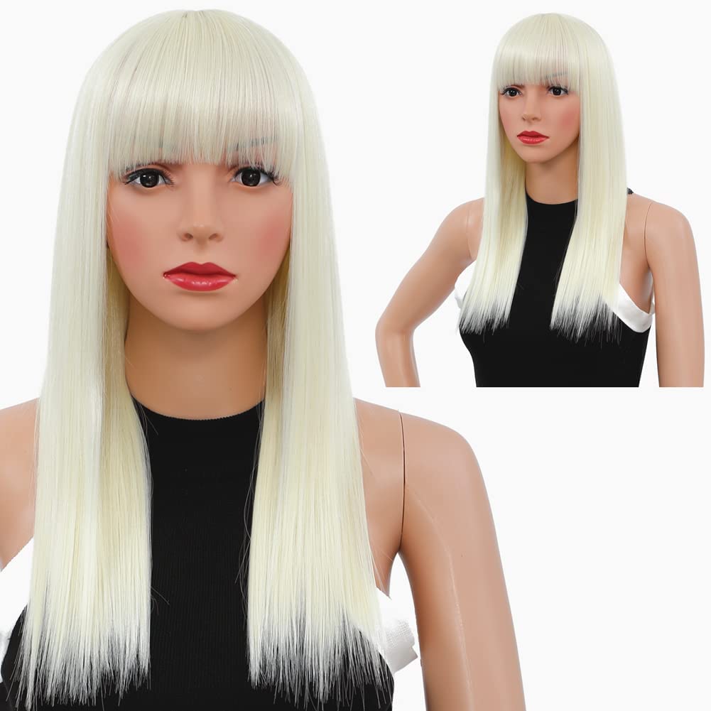 Wig with fringe 45 cm Synthetic long wigs straight blonde for long white blonde with bangs fringht wigs for women