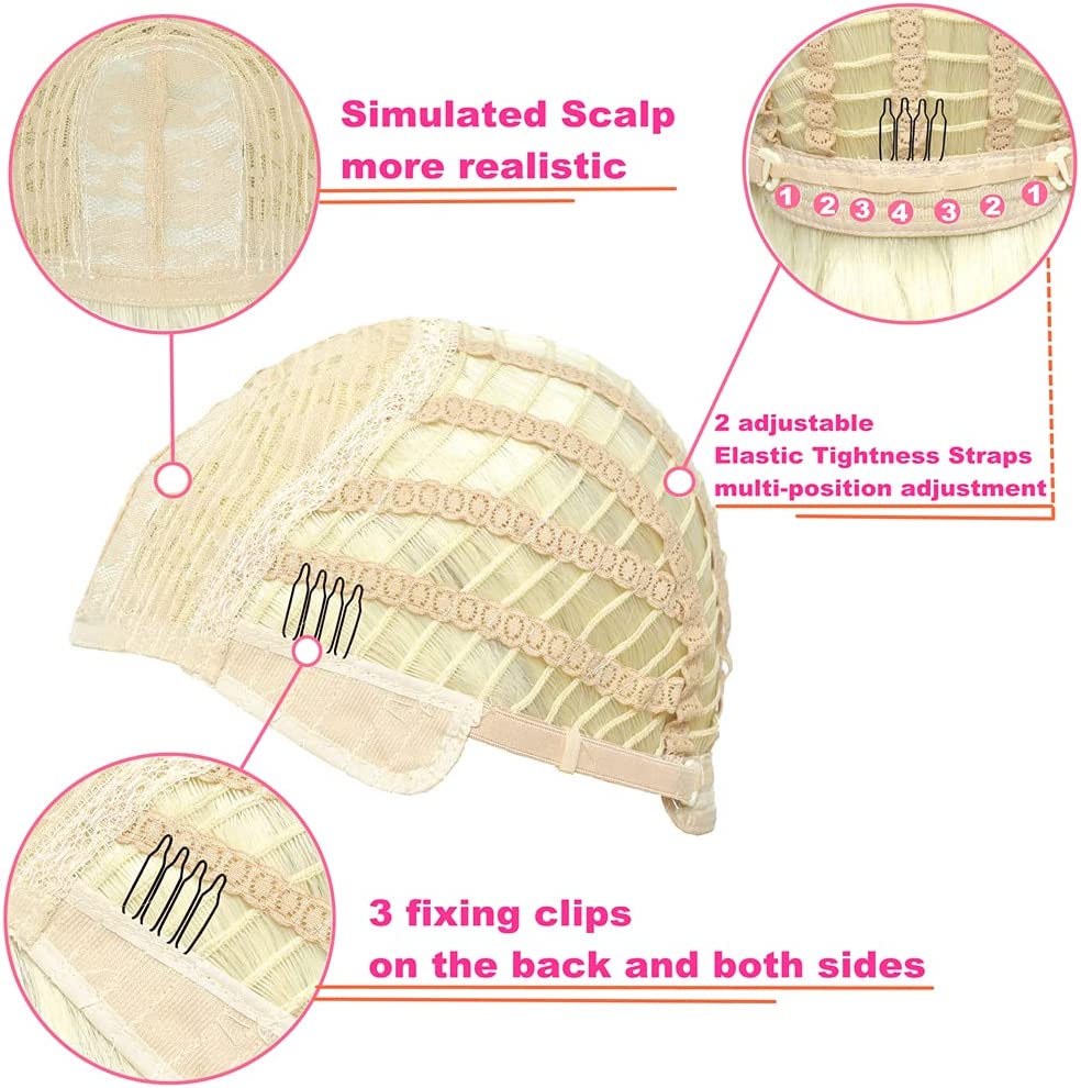 - Wig cup: the circumference of the Blond Straight Wigs Bonnet is around 22 to 23 inches. It is also designed with 3 safety combs and 2 adjustable straps if you need to adjust the cap.