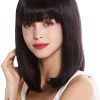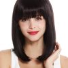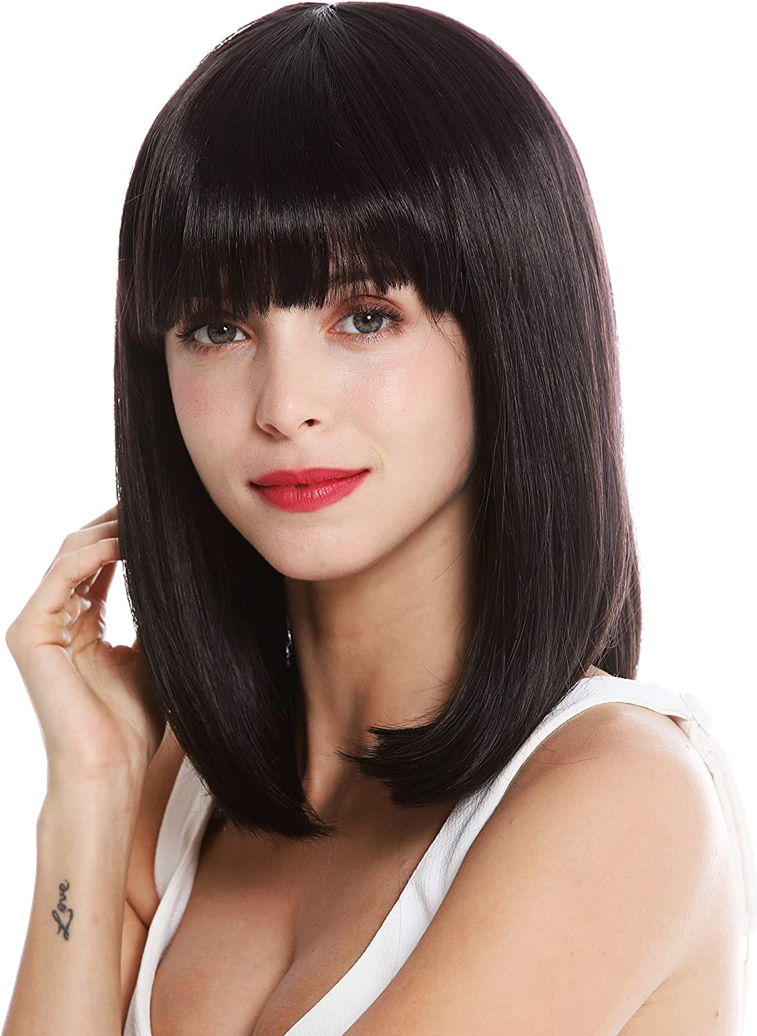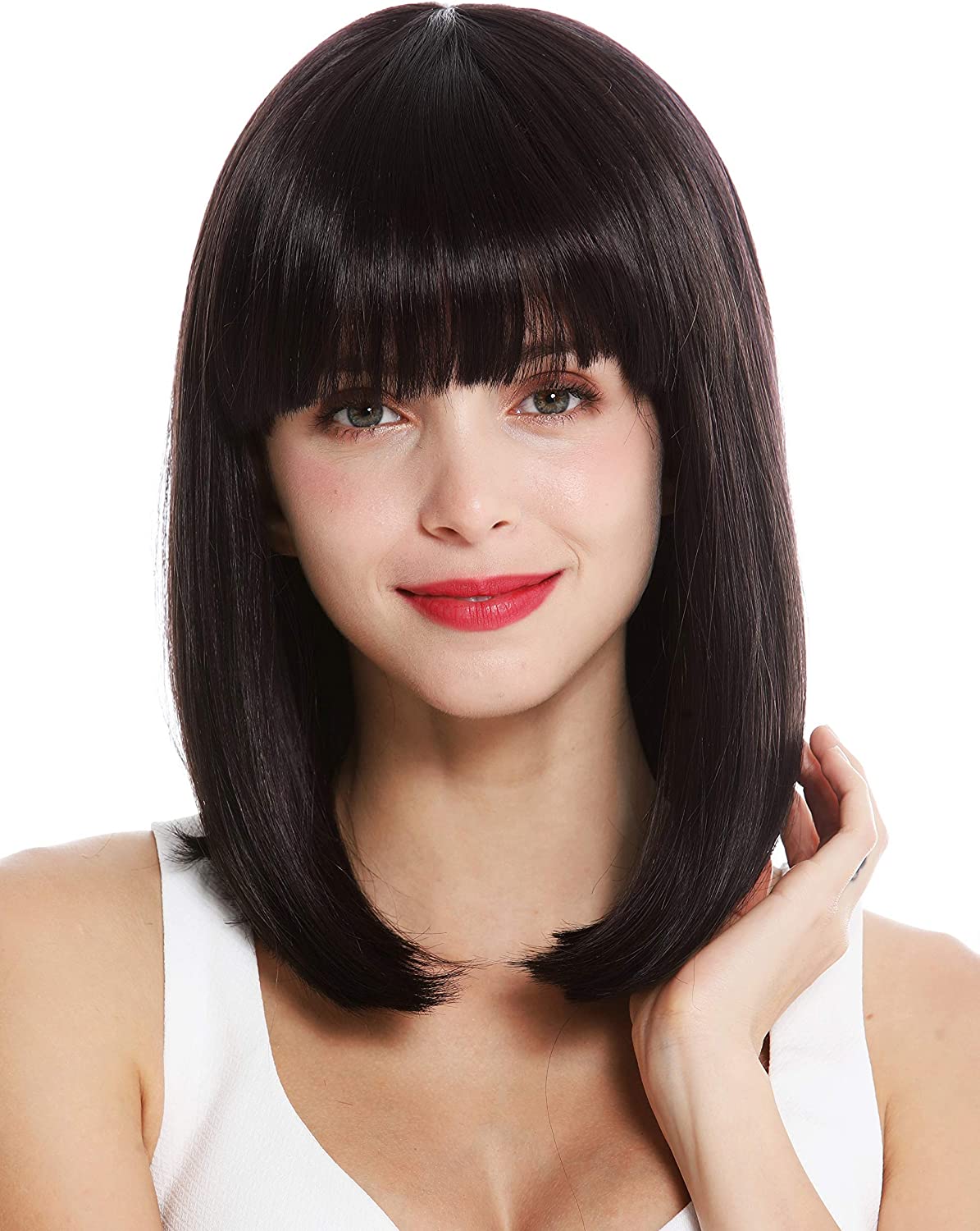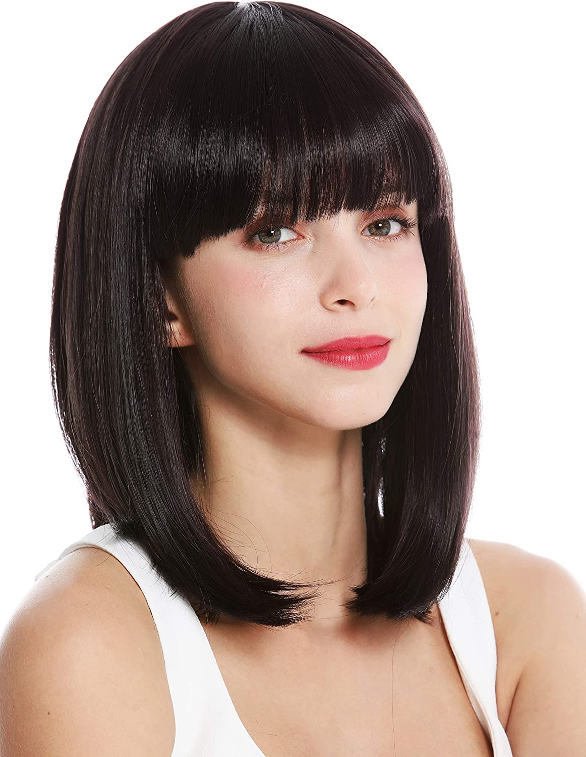 - A classic and sexy long square, smooth hair arrives at the shoulders with fringe. The model is available in several colors – here in dark brown with an addition of dark purple wicks. Length: approx. 40 cm.