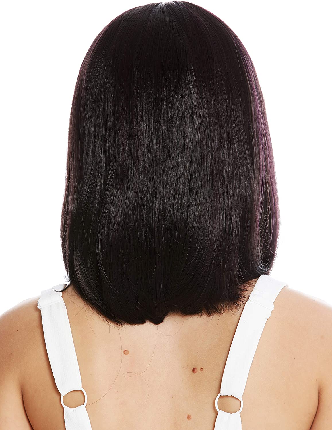 A classic and sexy long square, smooth hair arrives at the shoulders with fringe. The model is available in several colors – here in dark brown with an addition of dark purple wicks. Length: approx. 40 cm.