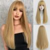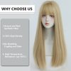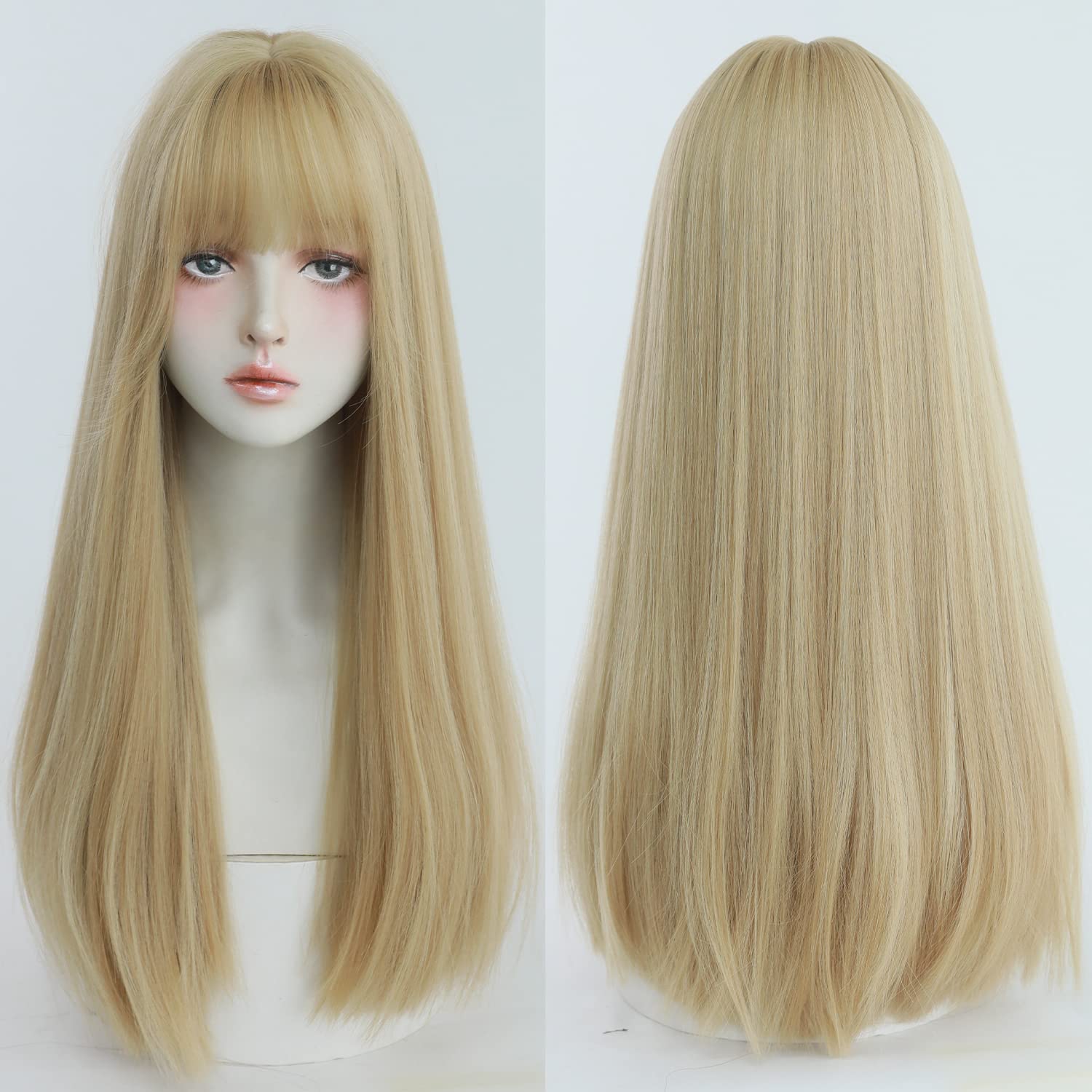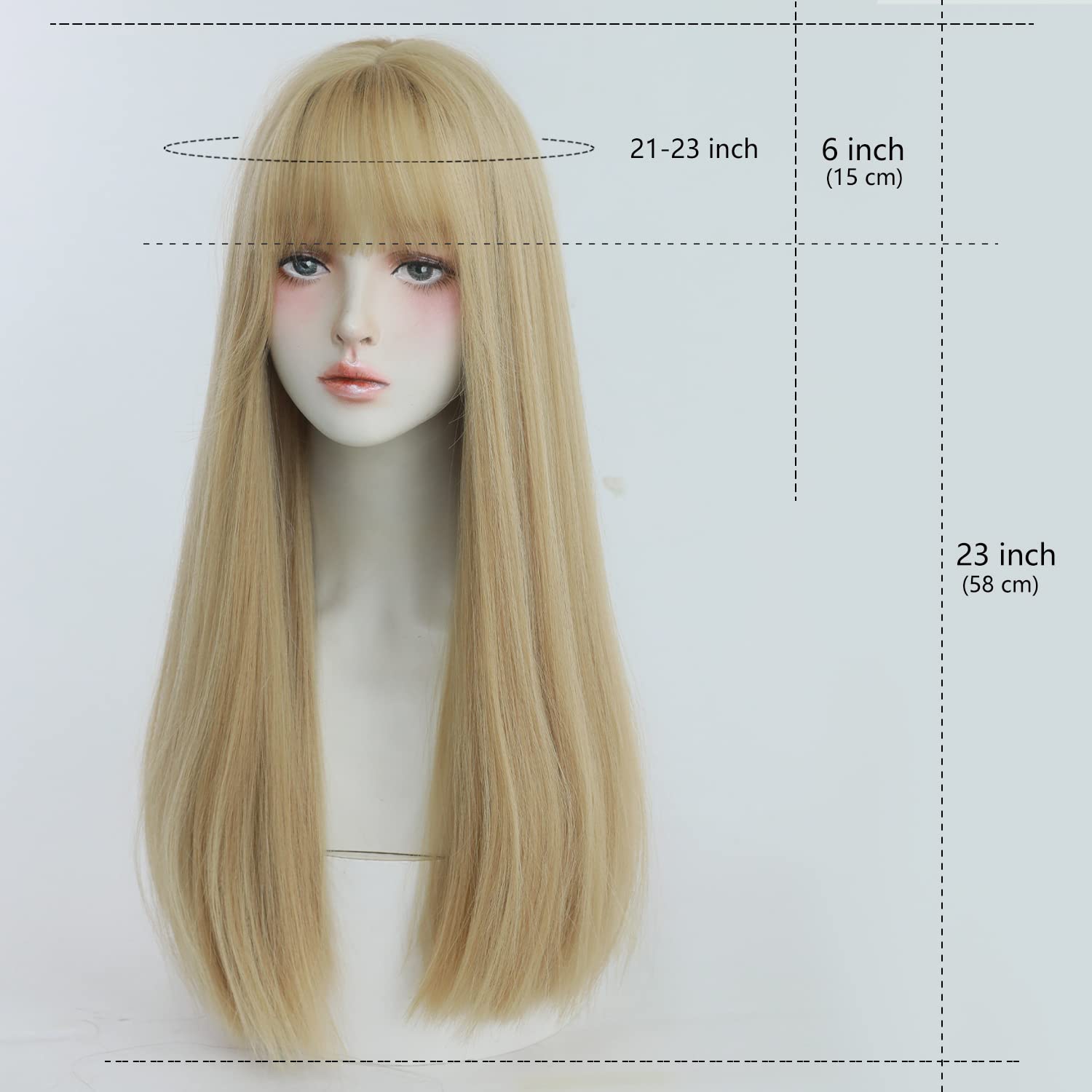 WIGS Blonde Wig With Bang For Women Long Straight Blonde Wig Synthetic Wig For Girl Emo Cosplay And Daily Use(23″ Blonde)