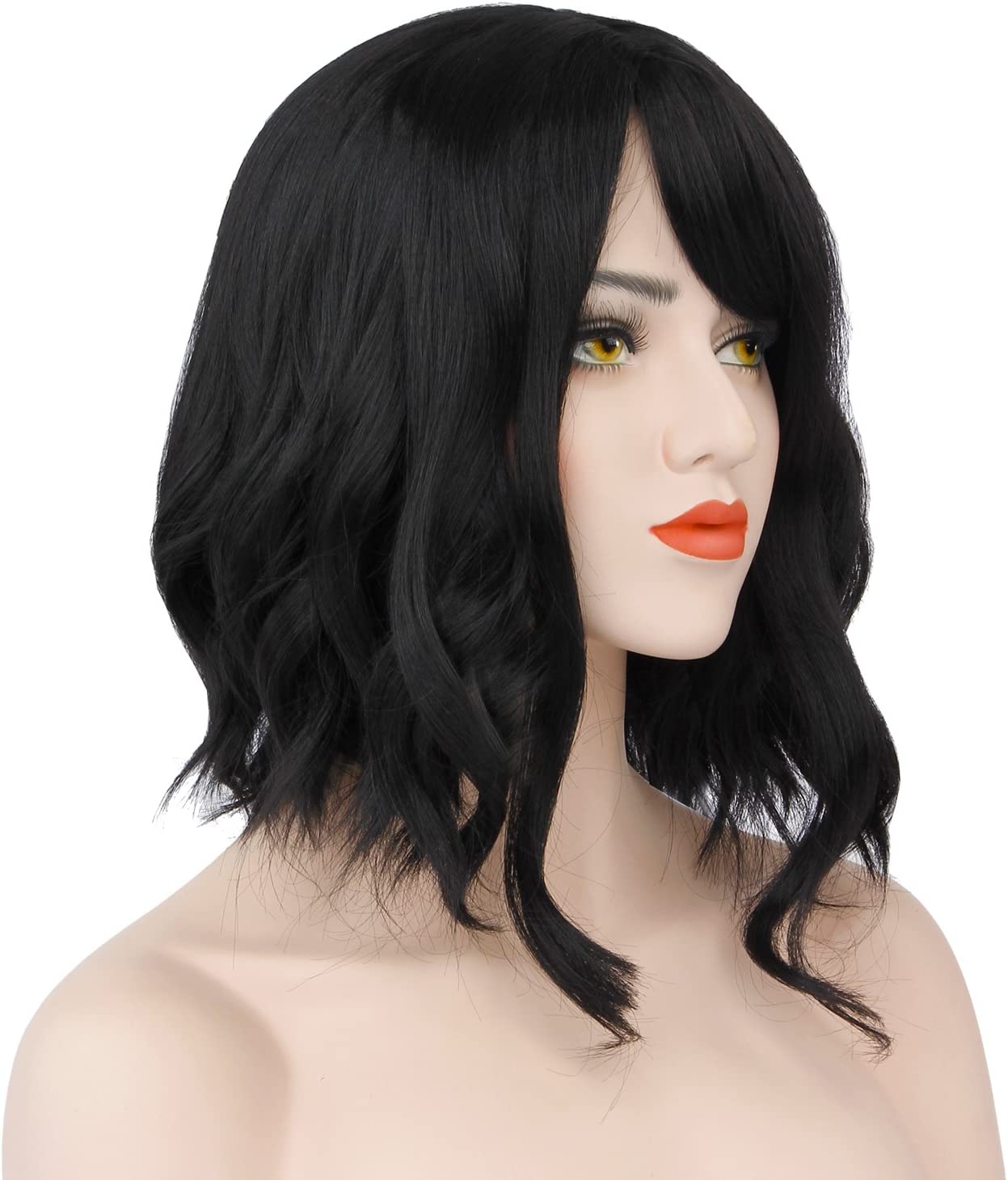 Feature:Short Curly Wig Sexy Lady Short Bob with Fringe Wave With Wig Cap for Women Cosplay Party.Notice:After a long transit , products may be a little cluster, but its very easy to improve it. You just need sprinkle some water and gently comb the wig, and everything will be fine.and this wig is actually pretty long, as most of other customer mentioned, but you can have the wig cut according to your need.
