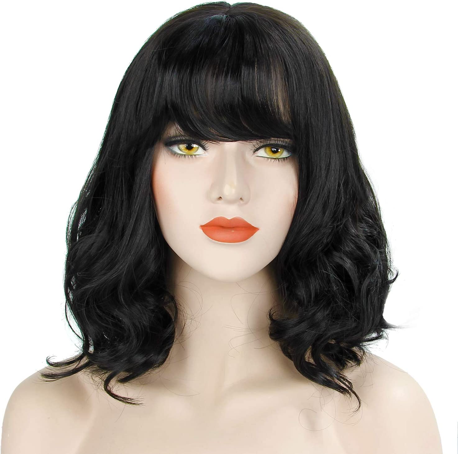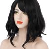 Women Black Wig Black Short Bob Wig With Fringe Curly Wig Charming Lady Bob Wigs For Women Cosplay Party Daily Use
