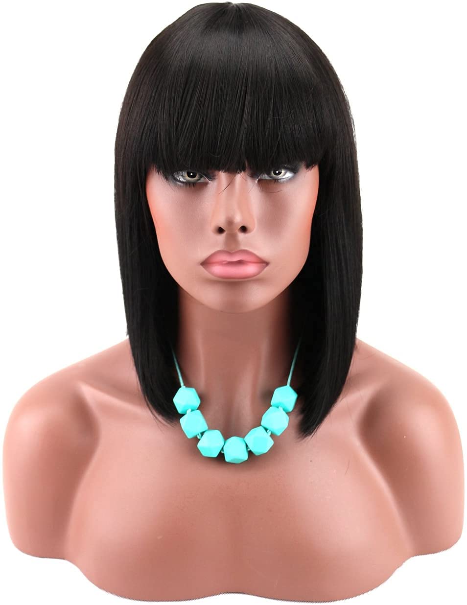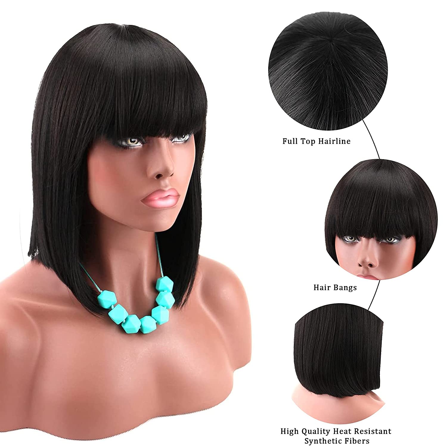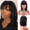Women’s Short Black Bob Wigs with Hair Bangs Synthetic Full Hair Wig Heat Resistant Short Straight Black Wig for Women